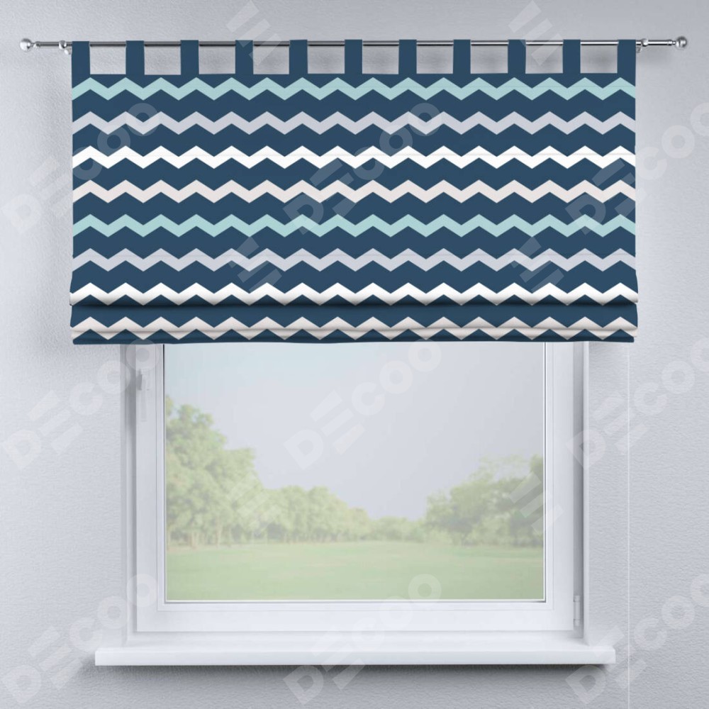 Римская штора производителя «Cortin», используется для проёма, пошита из ткани блэкаут с нанесением сублимационной печати «Морской шеврон». Данная модель пошита на петлях, комплектуется на выбор круглым карнизом и подходит для монтажа на стену. Римская штора на петлях имеет простую систему регулировки высоты, отличительным преимуществом данной модели является простой способ монтажа. Достаточно повесить ее на трубу и штора готова!