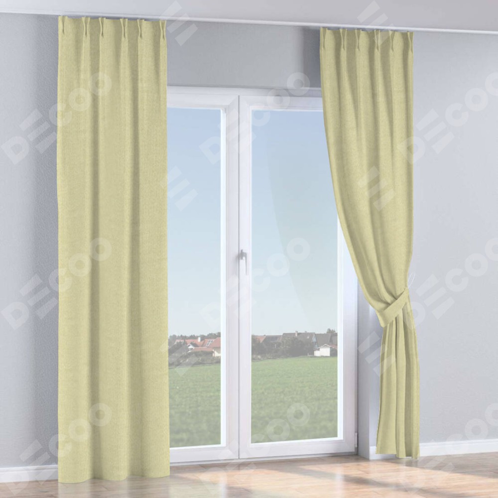 Комплект прямых штор, от производителя «Cortin», пошиты из ткани лён димаут шампань, артикул ткани 90994. С изнаночной стороны в верхней части штор пристрачивается шторная лента с декоративными складками «Кустик». Для создания элегантных складок прямые шторы шьются по стандарту с коэффициентом 1:2 (на 100 см. ширины проёма 200 см. ширины ткани).