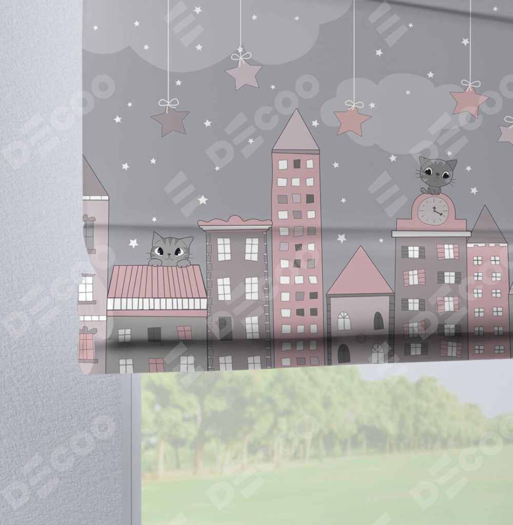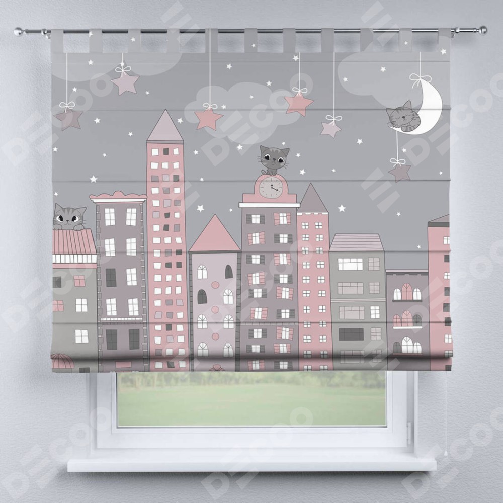 Римская штора «Кортин» на петлях «Вечерний город»