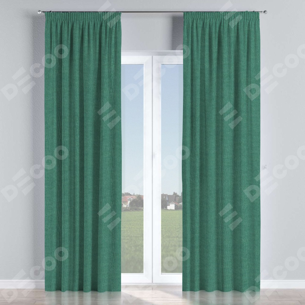 Комплект прямых штор, от производителя «Cortin», пошиты из ткани лён димаут светло-бирюзовый, артикул ткани 91005. С изнаночной стороны в верхней части штор пристрачивается шторная лента с декоративными складками «Карандаш». Для создания элегантных складок прямые шторы шьются по стандарту с коэффициентом 1:2 (на 100 см. ширины проёма 200 см. ширины ткани).