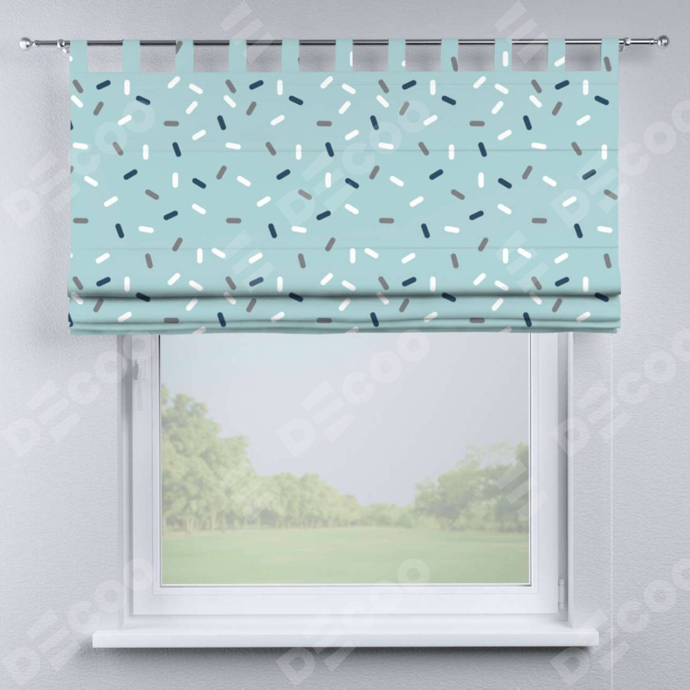 Римская штора производителя «Cortin», используется для проёма, пошита из ткани блэкаут с нанесением сублимационной печати «Короткие линии». Данная модель пошита на петлях, комплектуется на выбор круглым карнизом и подходит для монтажа на стену. Римская штора на петлях имеет простую систему регулировки высоты, отличительным преимуществом данной модели является простой способ монтажа. Достаточно повесить ее на трубу и штора готова!