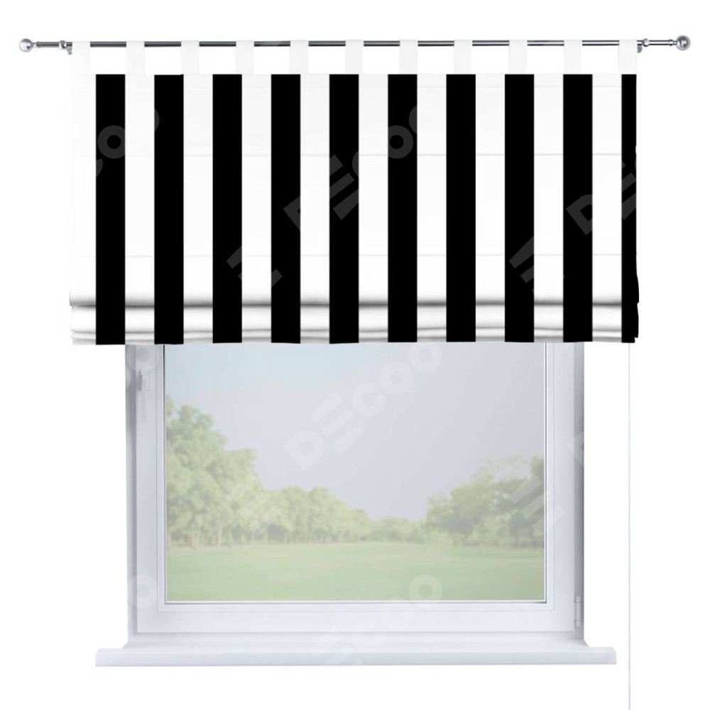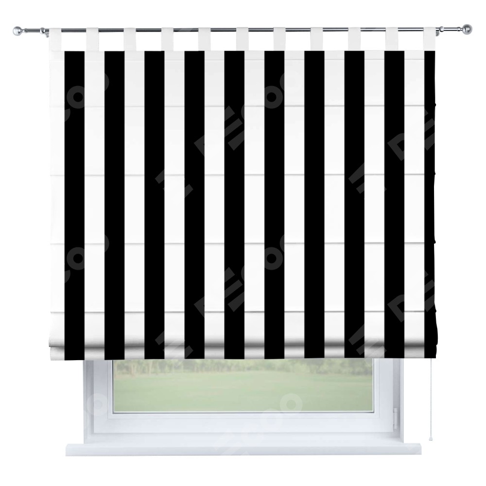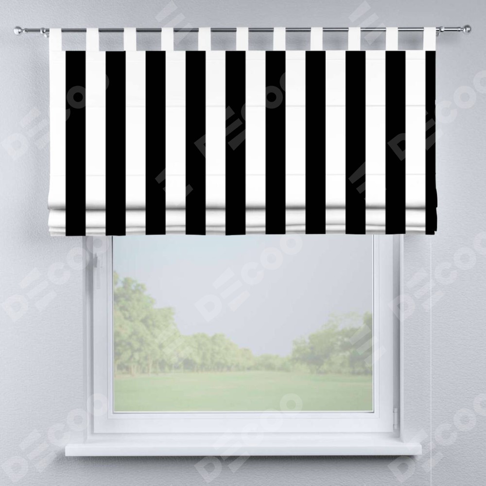 Римская штора производителя «Cortin», используется для проёма, пошита из ткани блэкаут с нанесением сублимационной печати «Черное и белое». Данная модель пошита на петлях, комплектуется на выбор круглым карнизом и подходит для монтажа на стену. Римская штора на петлях имеет простую систему регулировки высоты, отличительным преимуществом данной модели является простой способ монтажа. Достаточно повесить ее на трубу и штора готова!
