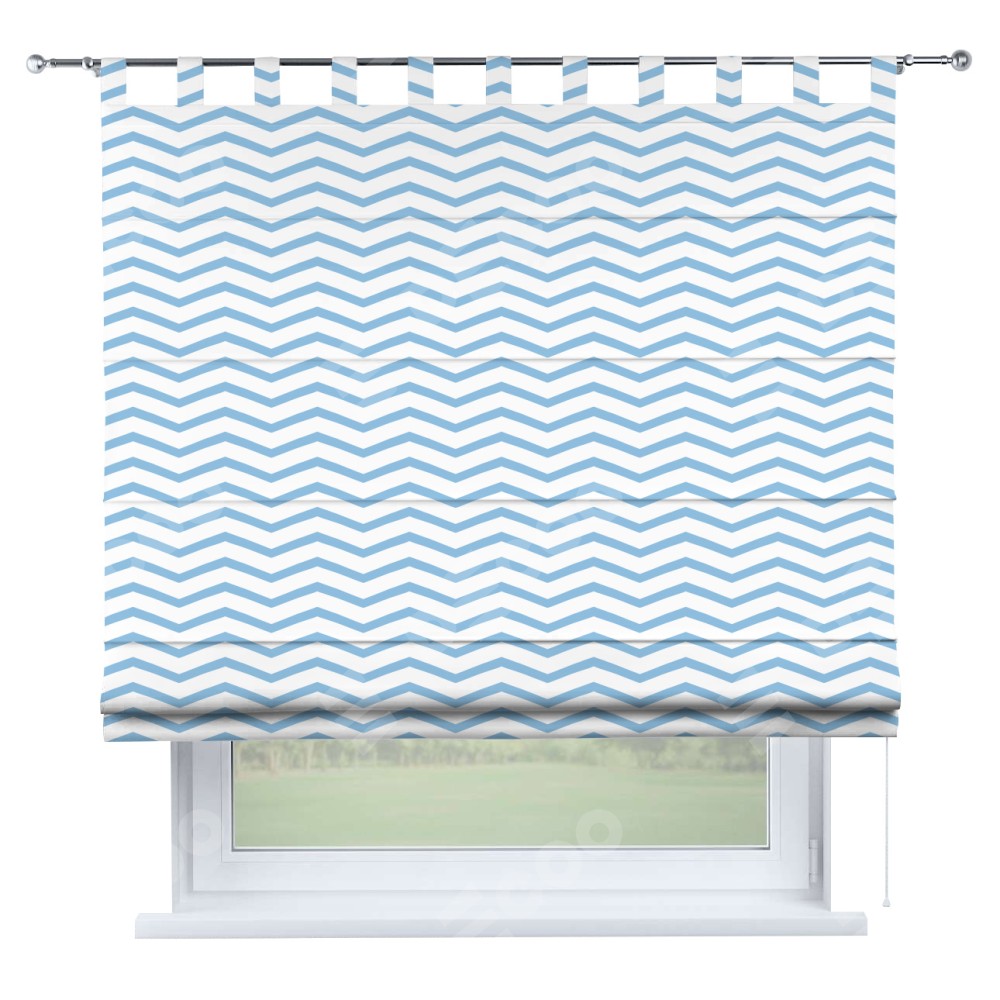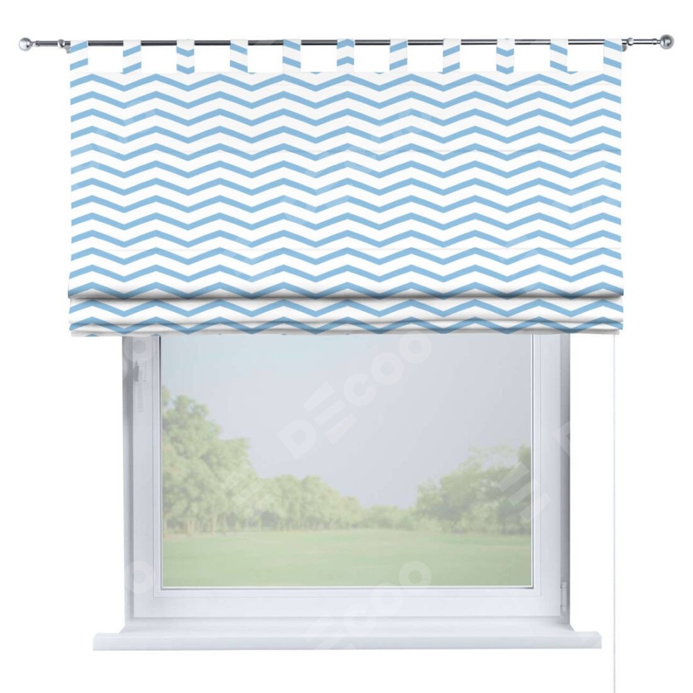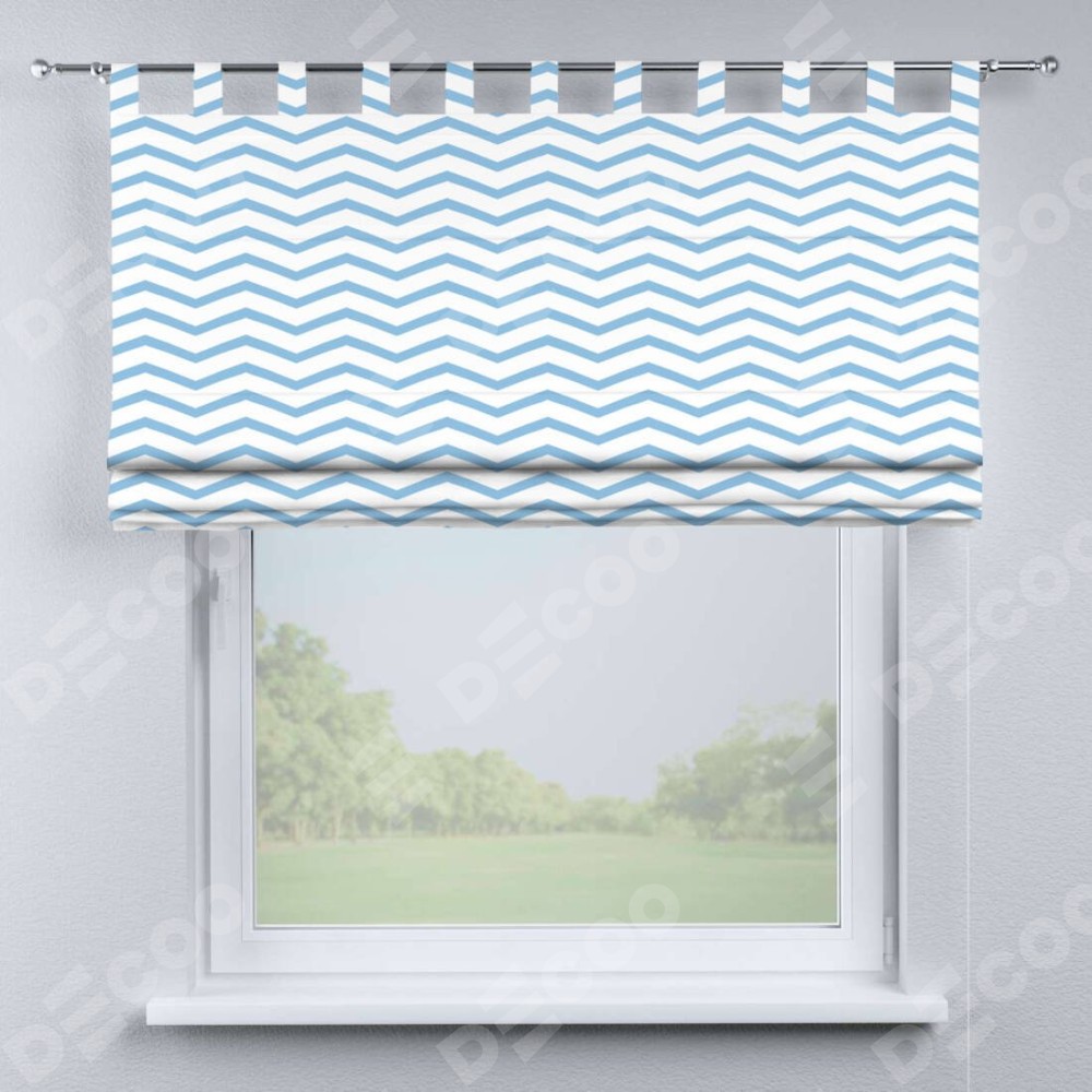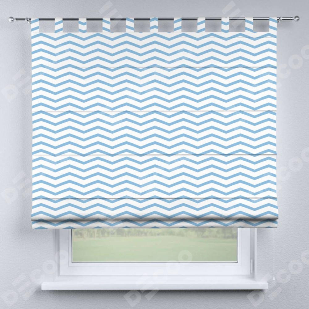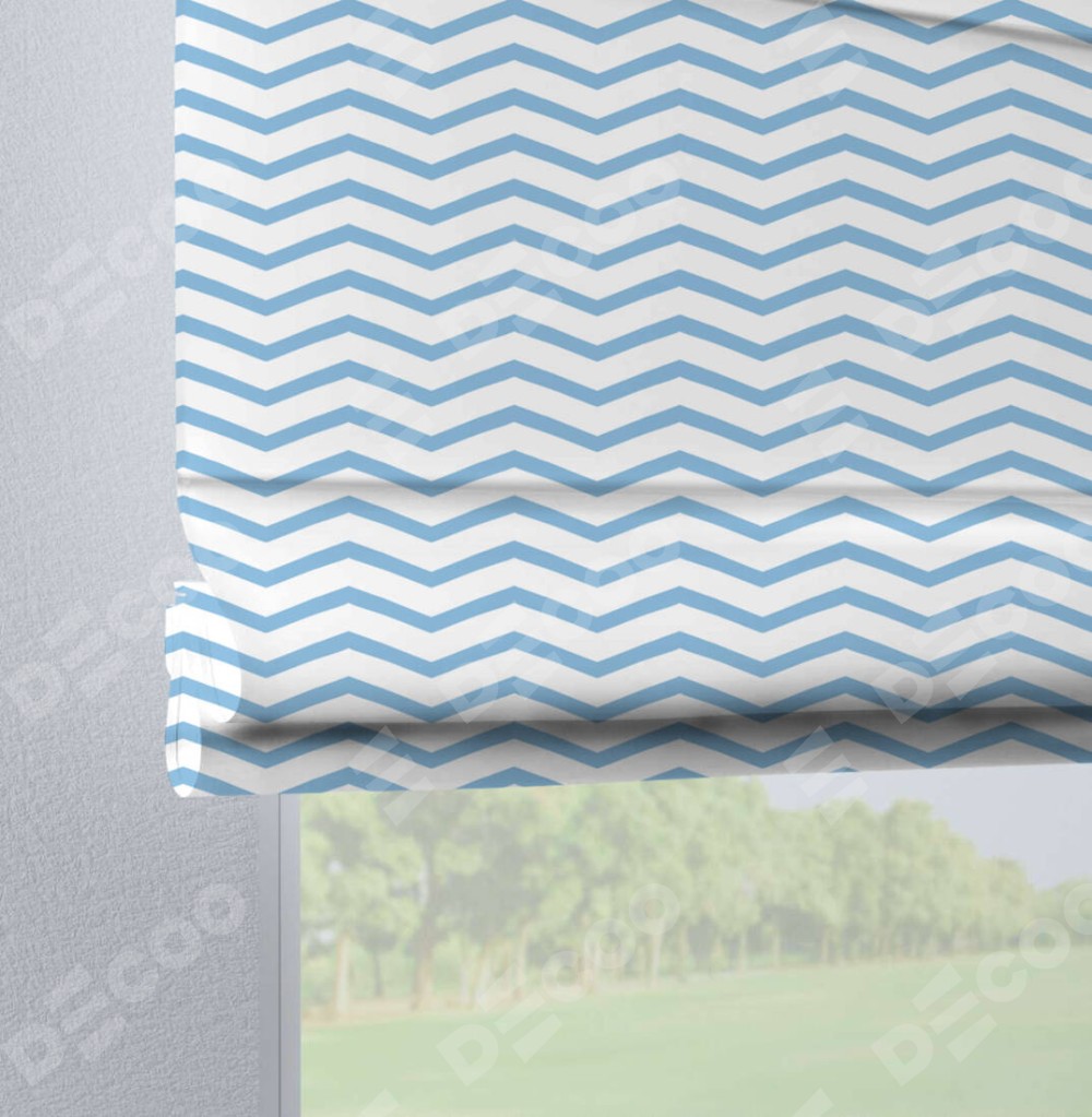 Римская штора производителя «Cortin», используется для проёма, пошита из ткани блэкаут с нанесением сублимационной печати «Зигзаг мелкий». Данная модель пошита на петлях, комплектуется на выбор круглым карнизом и подходит для монтажа на стену. Римская штора на петлях имеет простую систему регулировки высоты, отличительным преимуществом данной модели является простой способ монтажа. Достаточно повесить ее на трубу и штора готова!