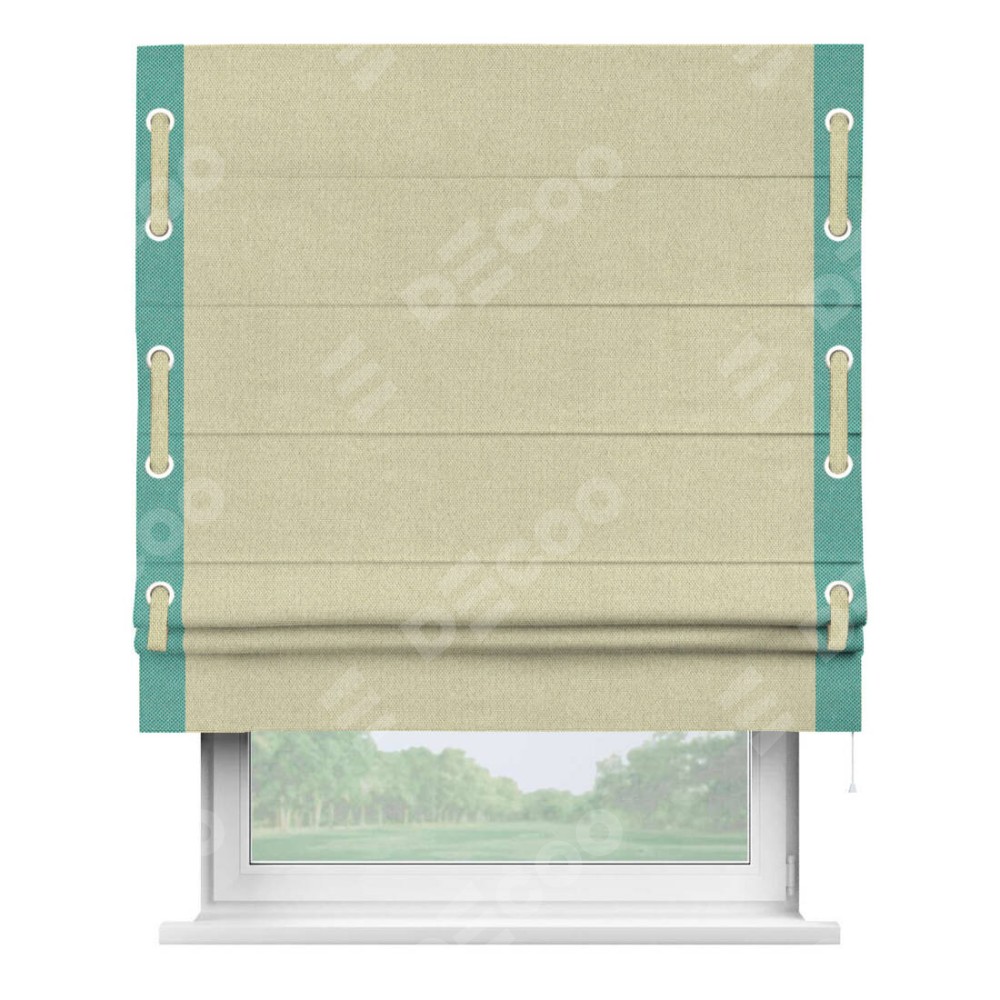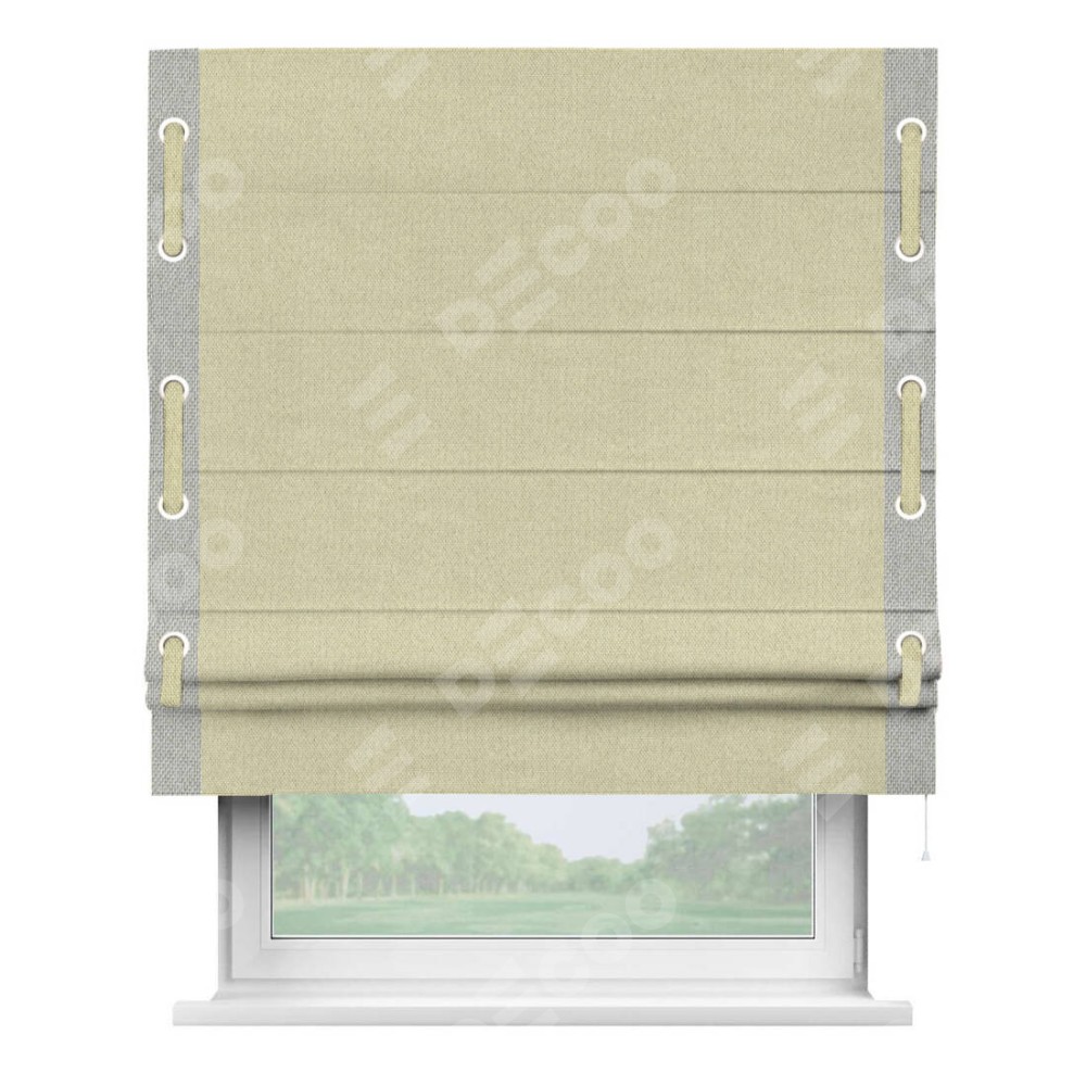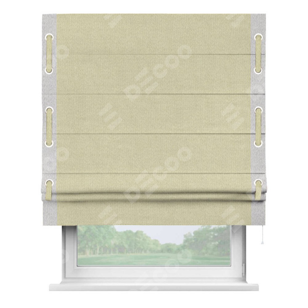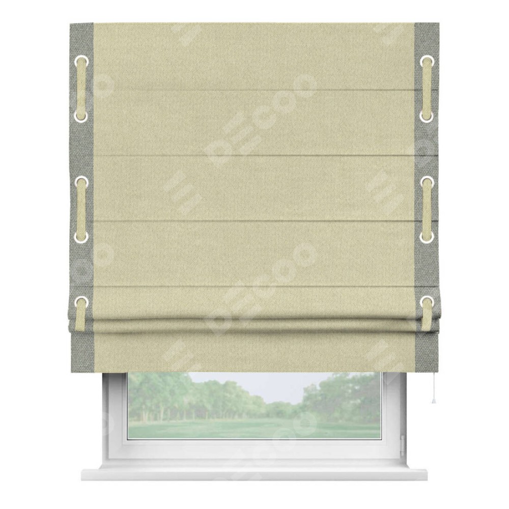 Римская штора «Кортин» с кантом Стрим Дуо (люверсы с пояском), для проема, ткань лён димаут, шампань