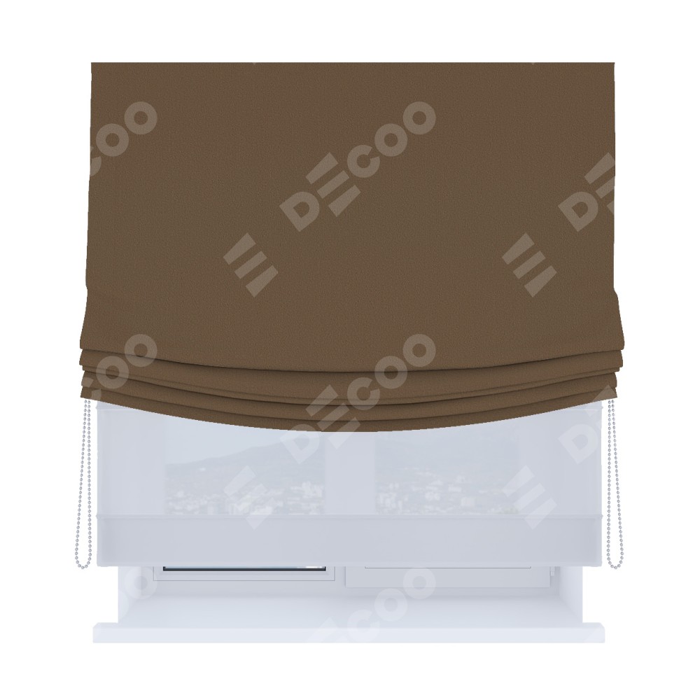 Римская штора день-ночь производителя «Cortin», используется для проёма, пошита из двух полотен, с лицевой стороны блэкаут однотонный коричневый артикул 91334, вторая ткань тюль (по стандарту комплектуется тюль белого цвета артикул V-01). Имеет универсальный механизм и подходит для монтажа: на потолок, на стену и в нишу. Удобное управление каждой шторой отдельно.