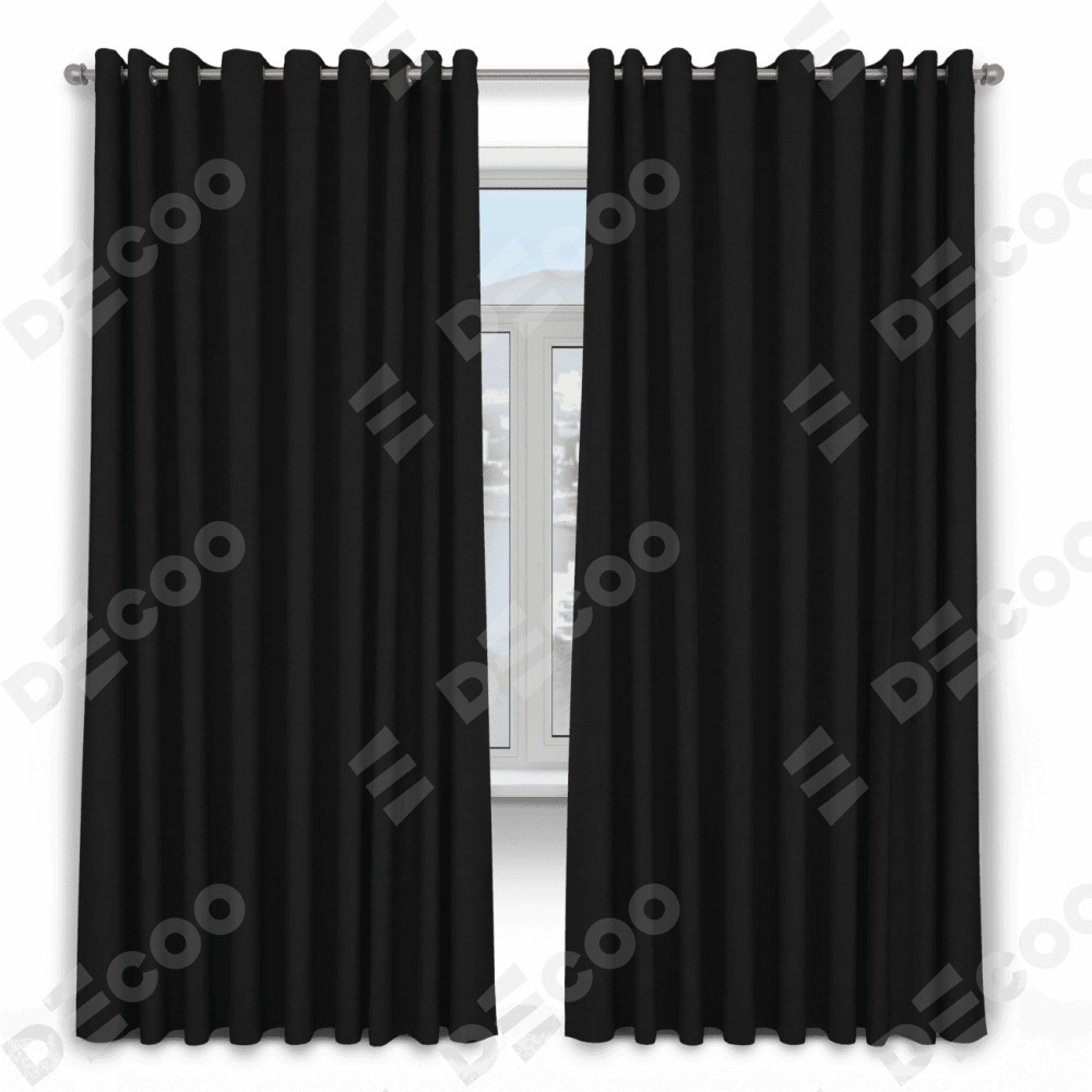 Комплект прямых штор, от производителя «Cortin», пошиты из ткани блэкаут однотонный черный, артикул ткани 79904. Данная модель пошита на люверсах, комплектуется на выбор круглым карнизом и подходит для монтажа на стену. Прямые шторы на люверсах шьются по стандарту с коэффициентом 1/2 (на 100 см. ширины проёма 200 см. ширины ткани), отличительным преимуществом данной модели является простой способ монтажа. Достаточно повесить ее на трубу и штора готова!