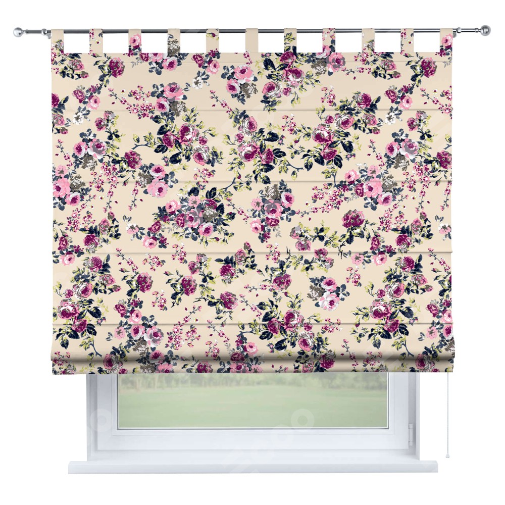 Римская штора на петлях «Россыпь розовых цветов»