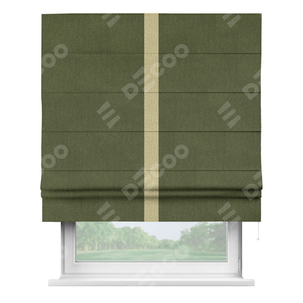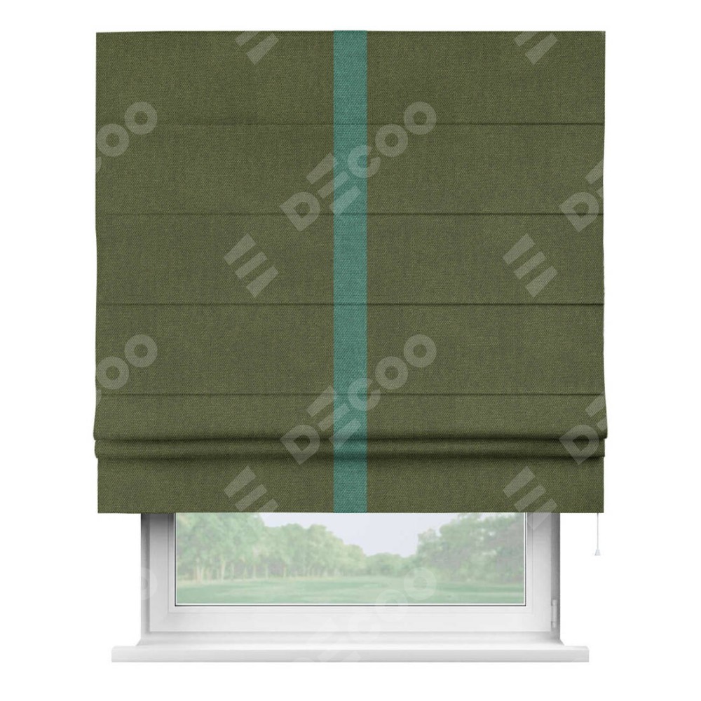 Римская штора «Кортин» для проема, лён димаут салатовый с кантом Хайвэй