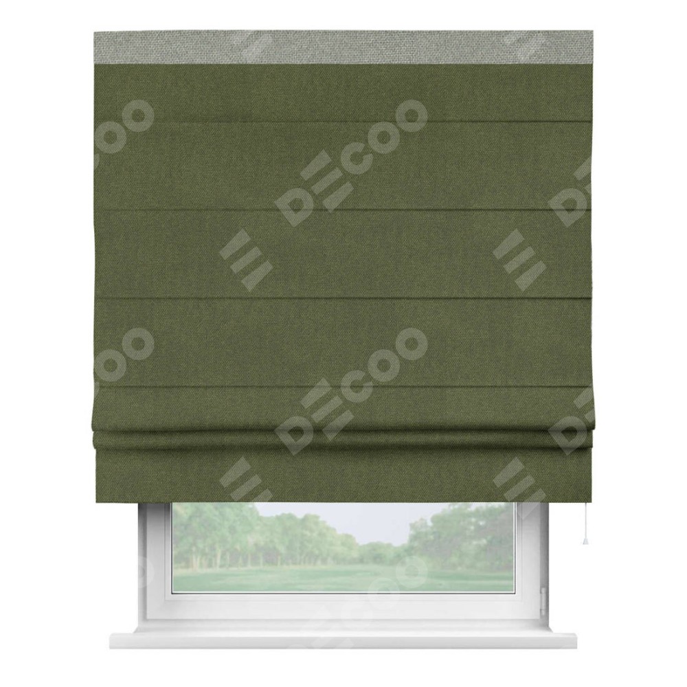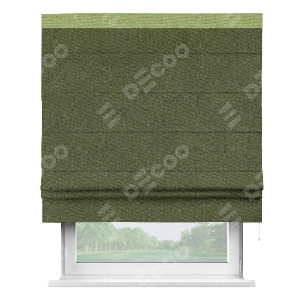 Римская штора «Кортин» для проема, лён димаут салатовый с кантом Кинг
