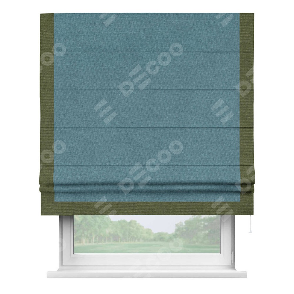 Римская штора «Кортин» для проема, лён димаут светло-синий с кантом Виктория