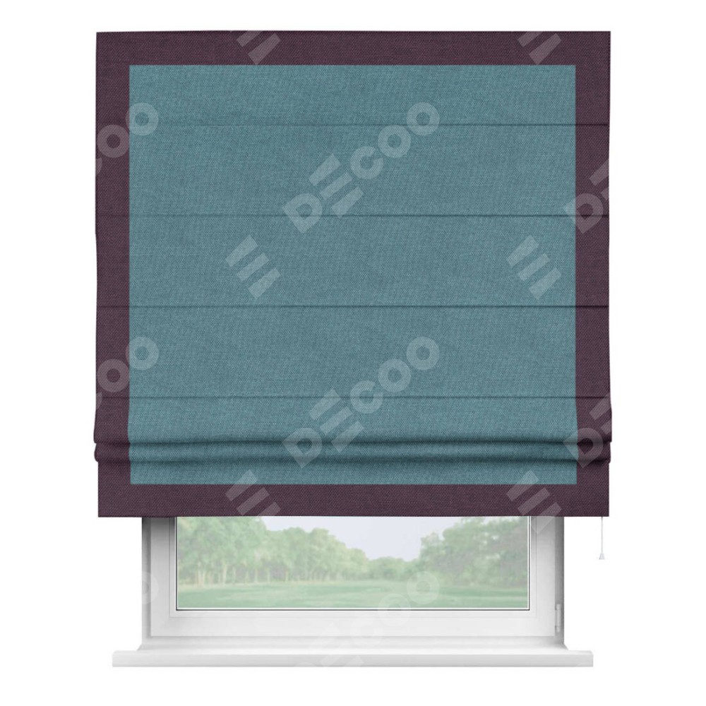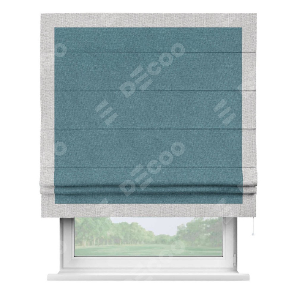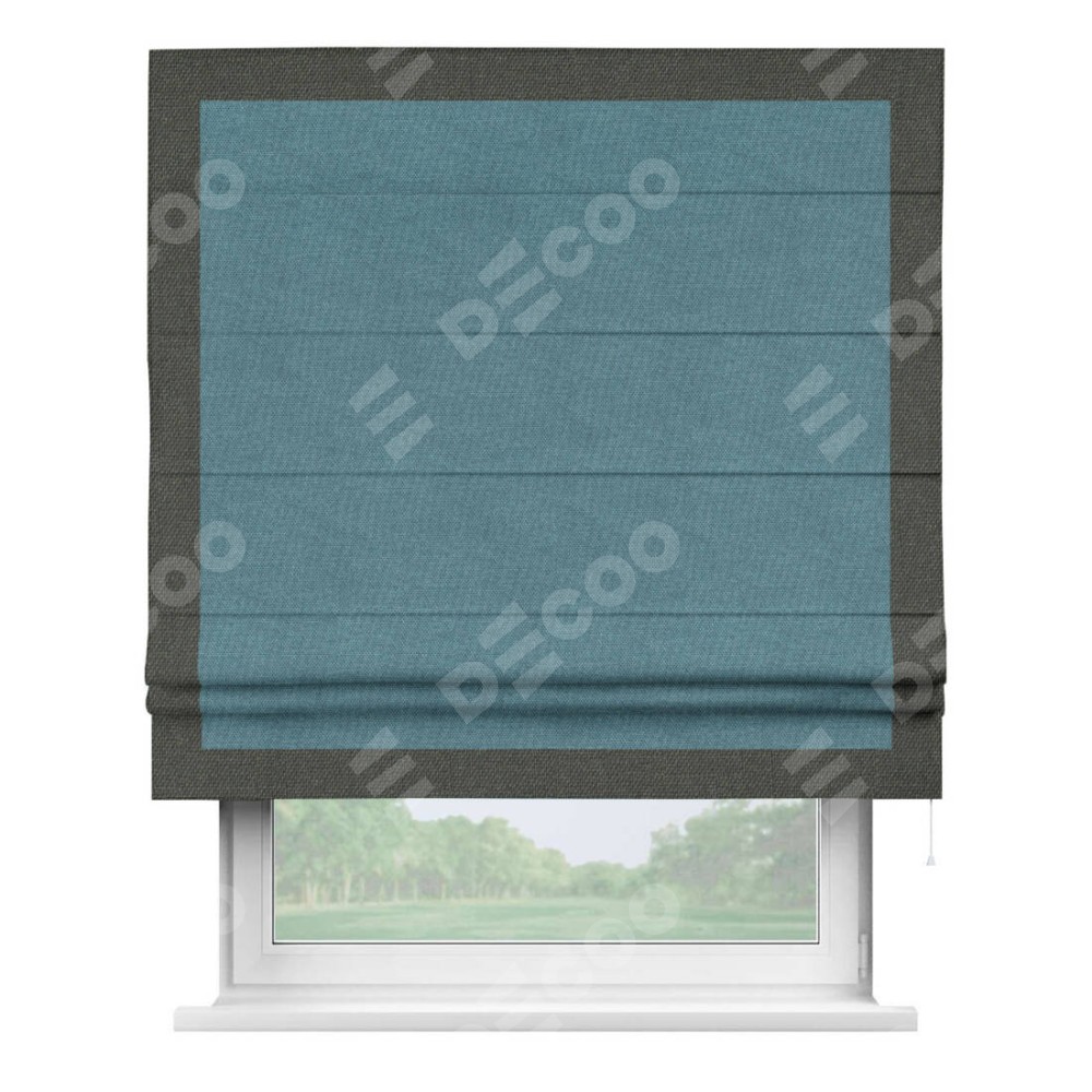 Римская штора «Кортин» для проема, лён димаут светло-синий с кантом Чесс