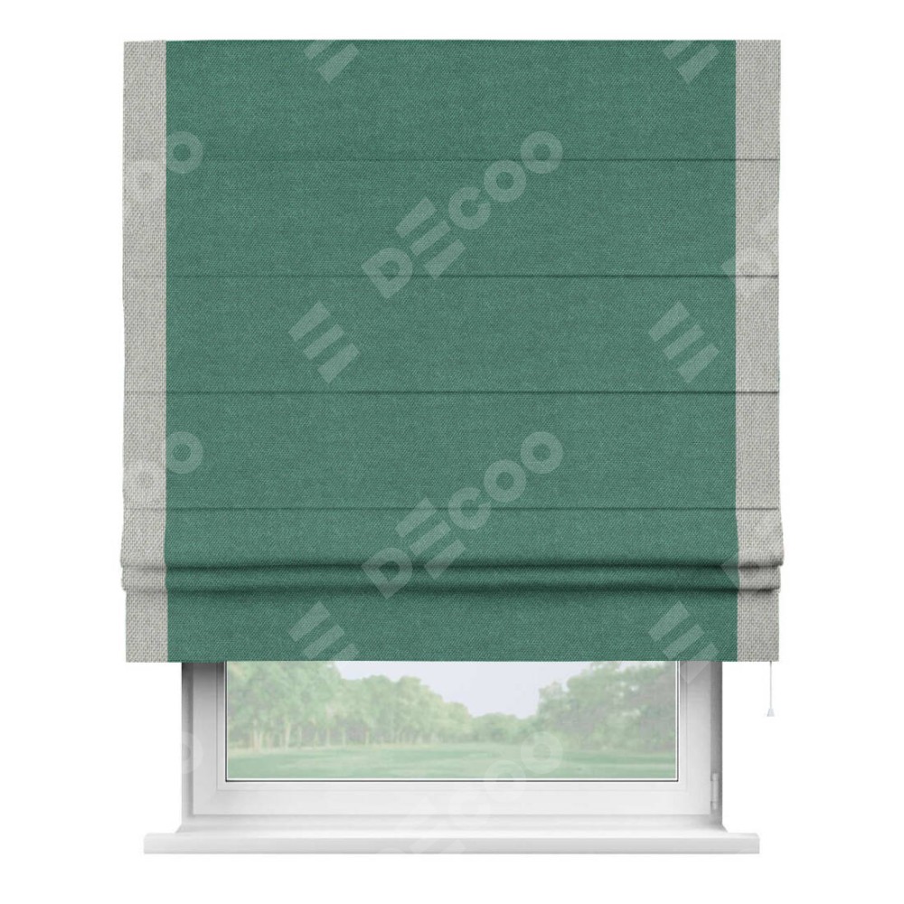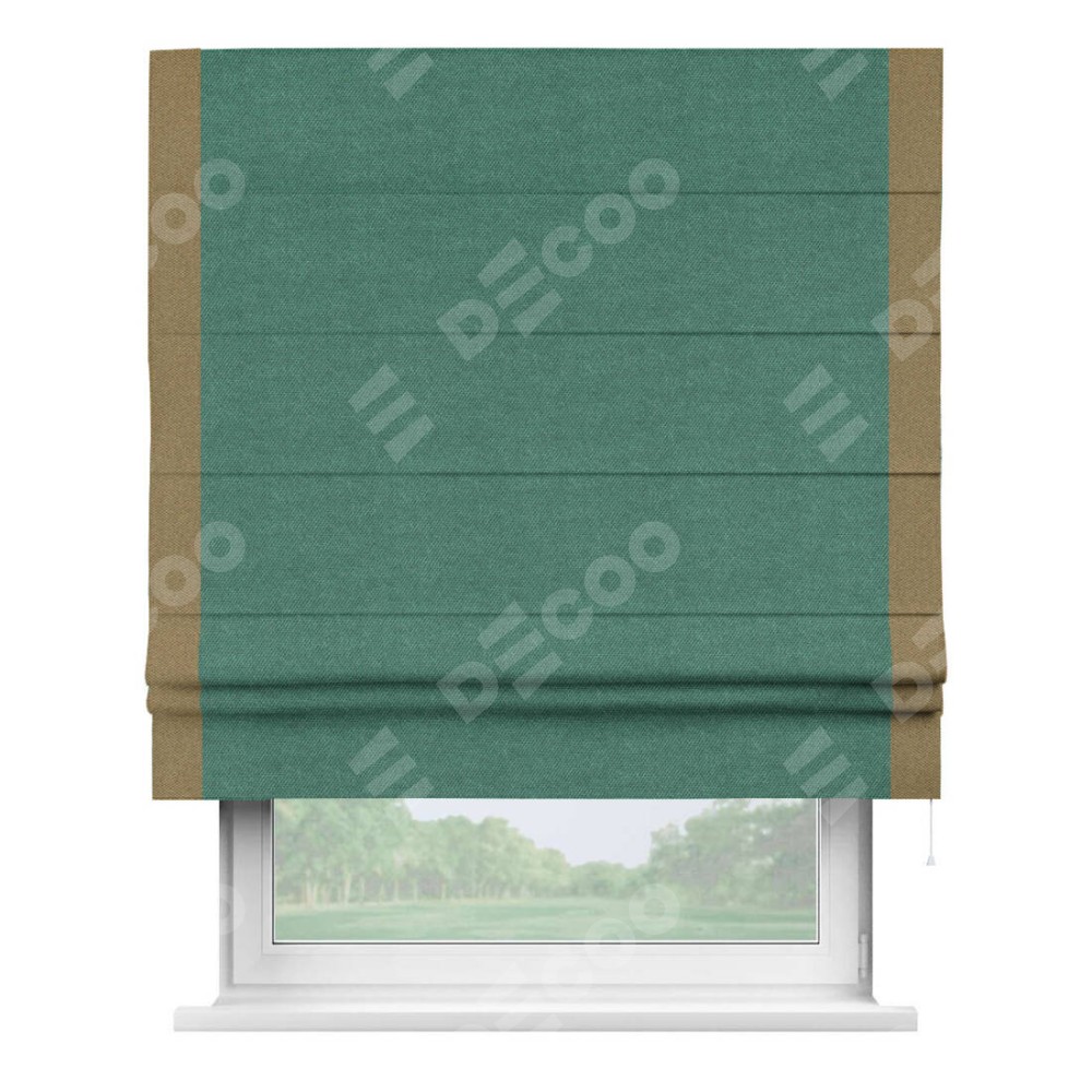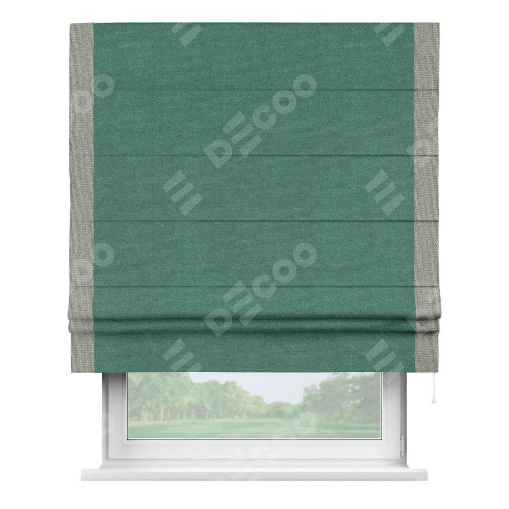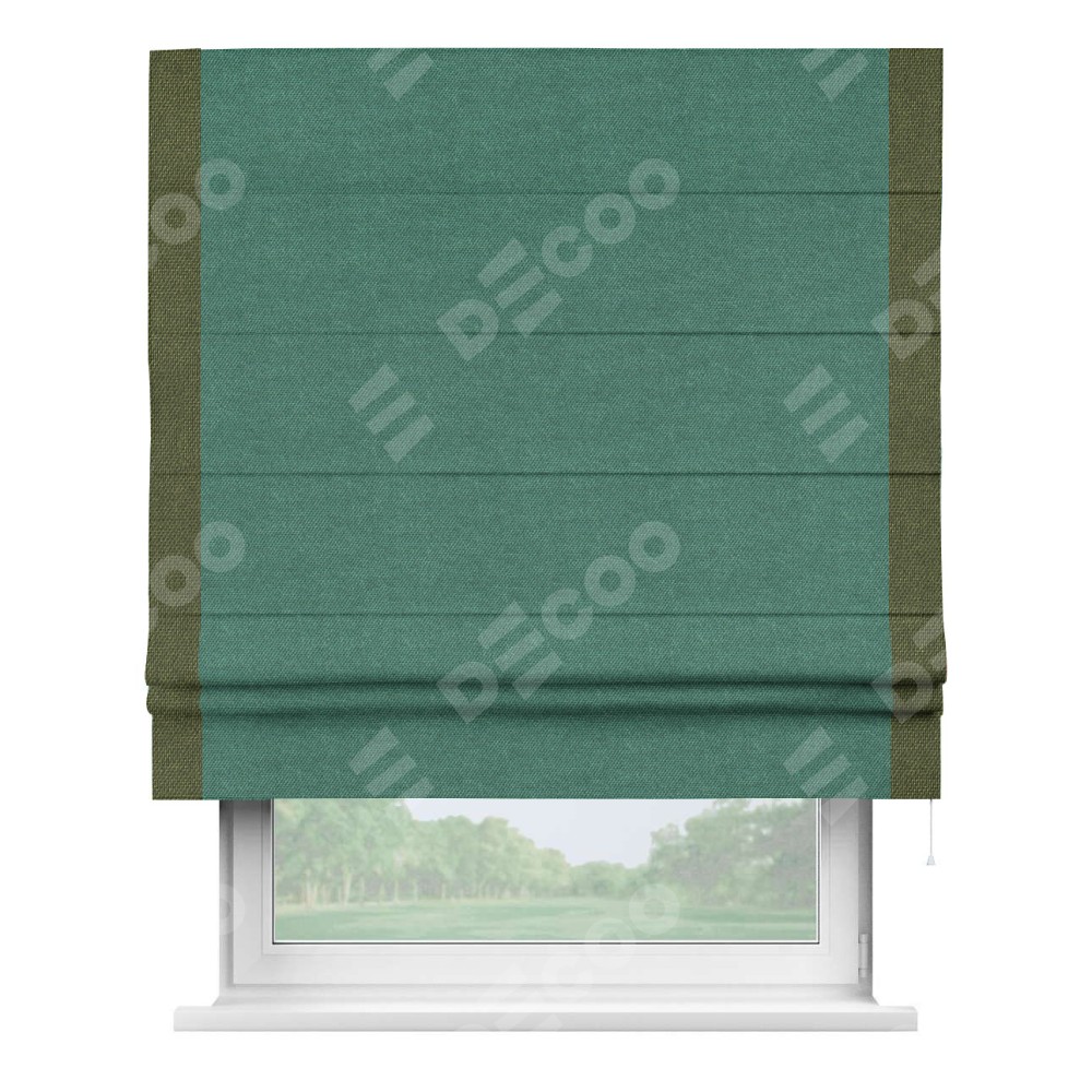 Римская штора «Кортин» для проема, лён димаут светло-бирюзовый с кантом Стрим Дуо