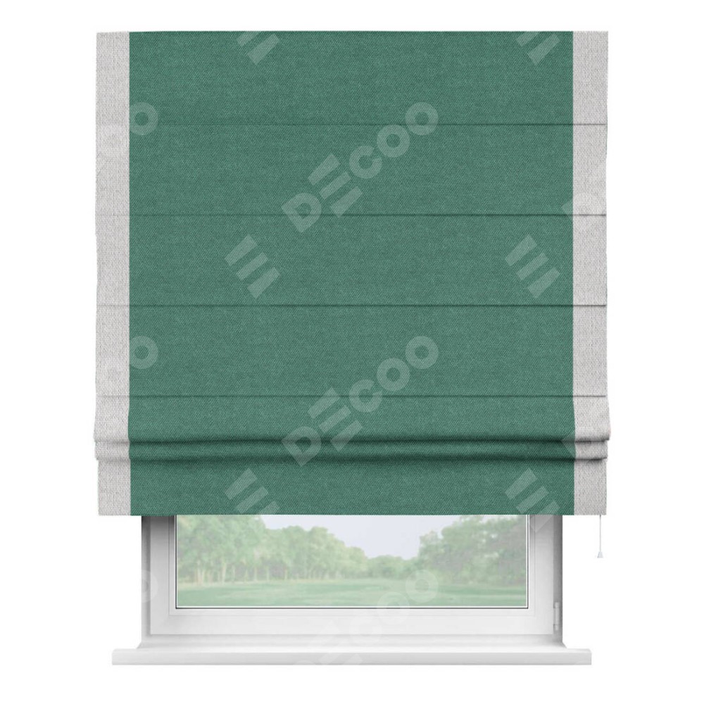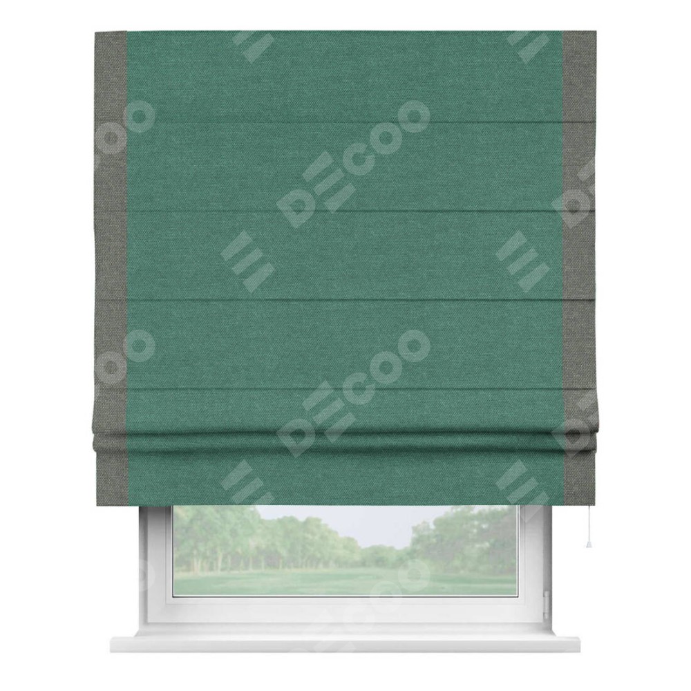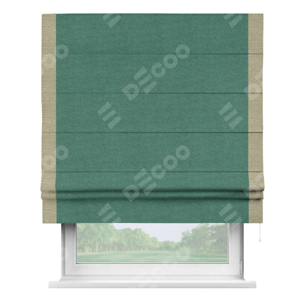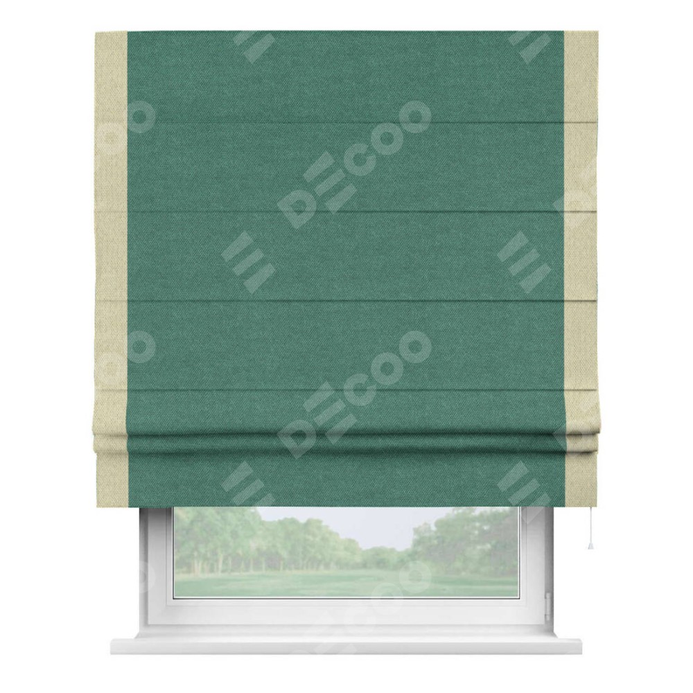 Римская штора «Кортин» для проема, лён димаут светло-бирюзовый с кантом Стрим Дуо