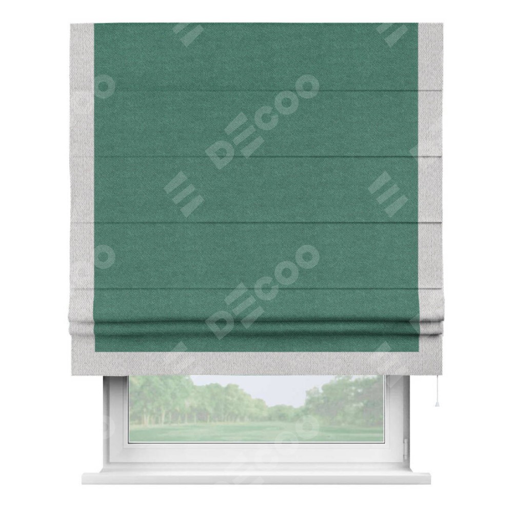 Римская штора «Кортин» для проема, лён димаут светло-бирюзовый с кантом Виктория
