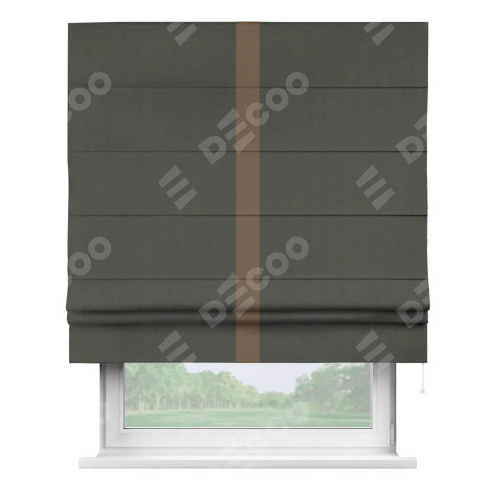 Римская штора «Кортин» для проема, блэкаут однотонный дымчато-серый с кантом Хайвэй