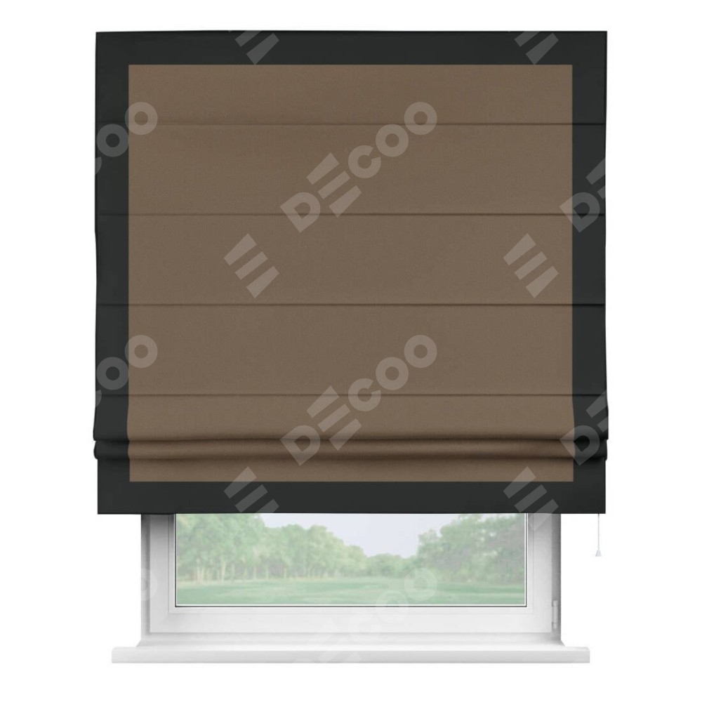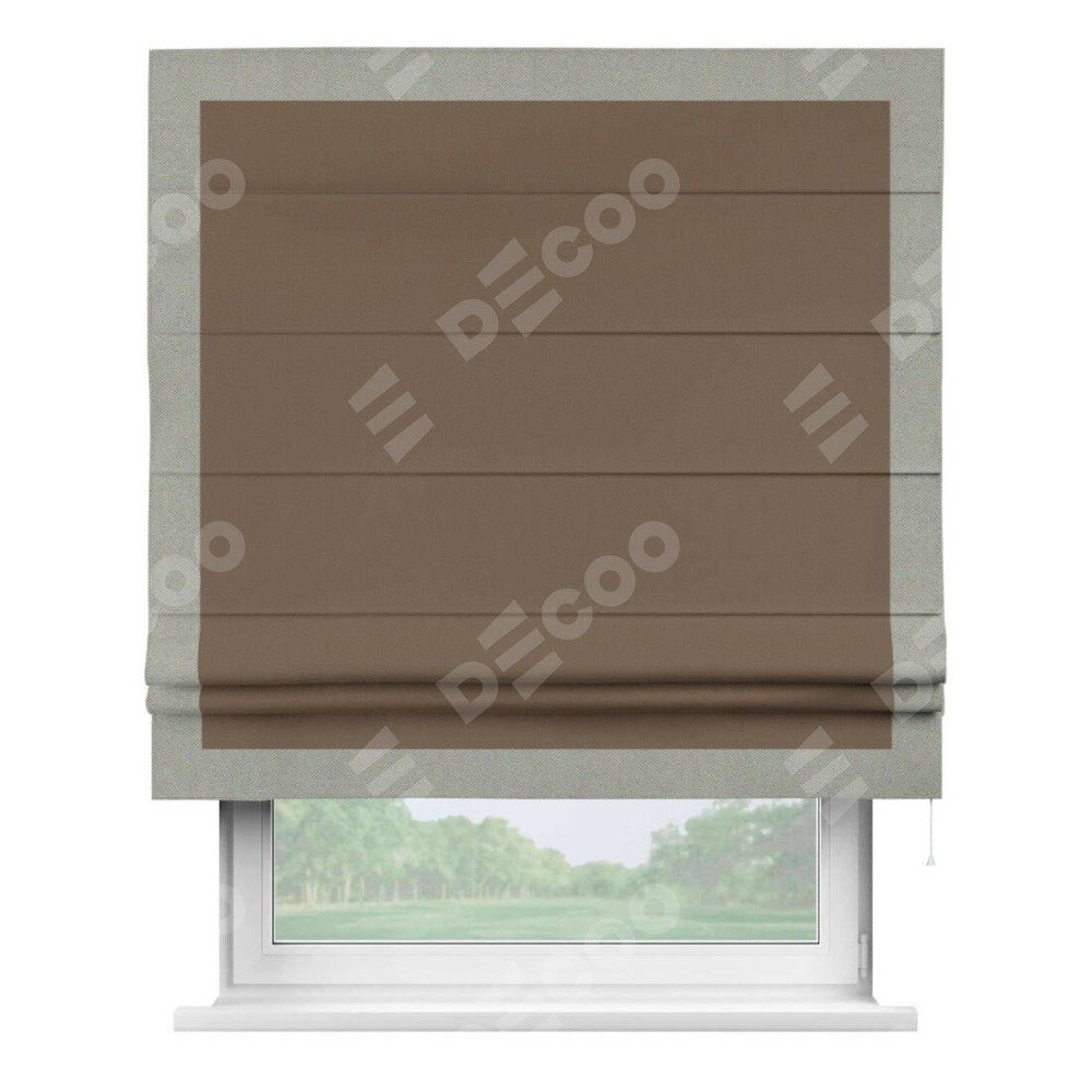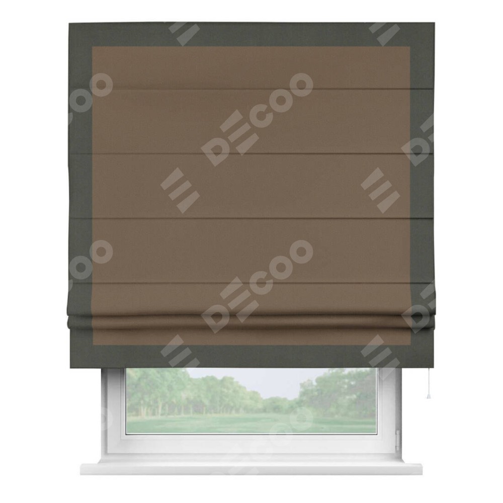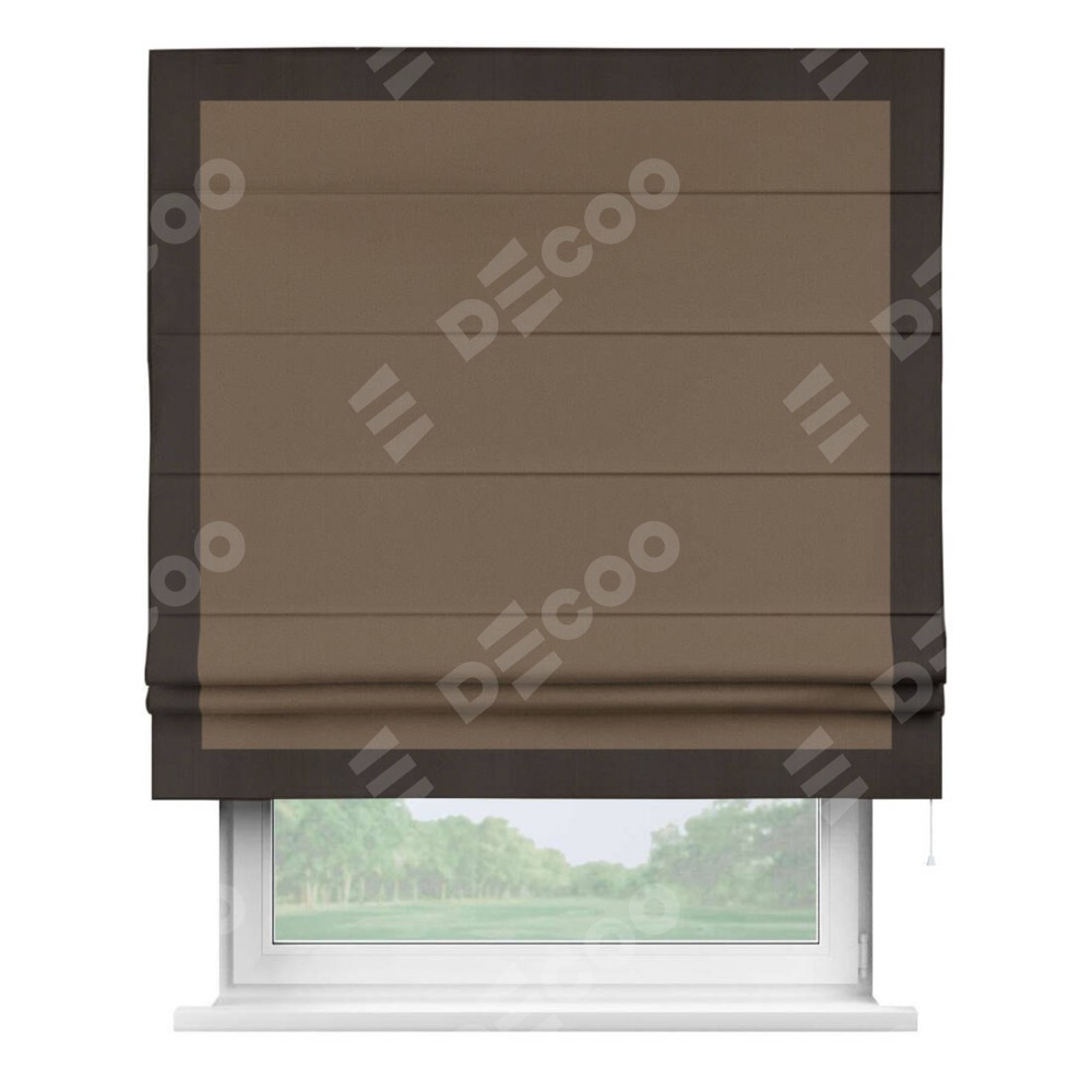 Римская штора «Кортин» для проема, блэкаут однотонный коричневый с кантом Чесс