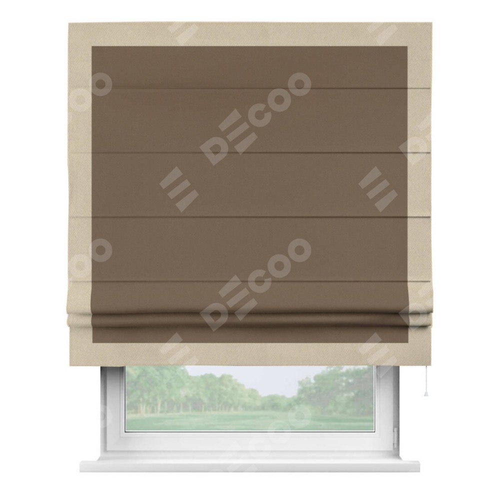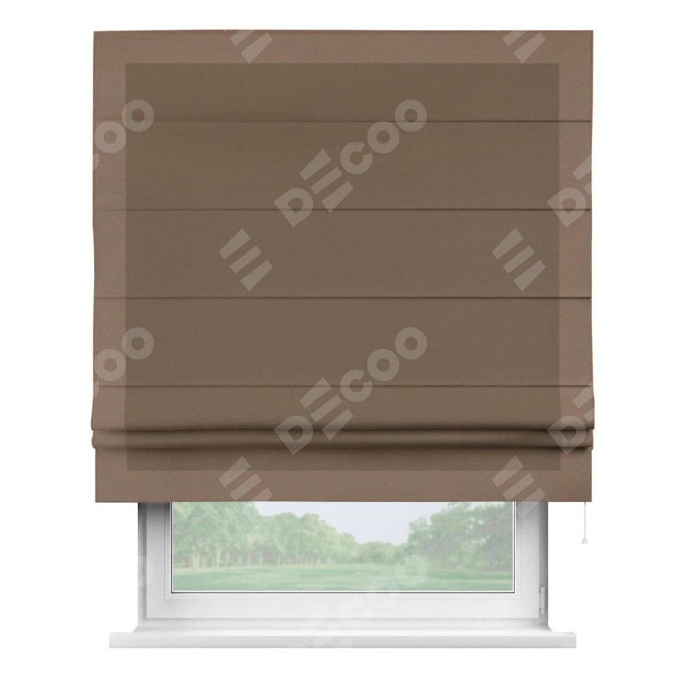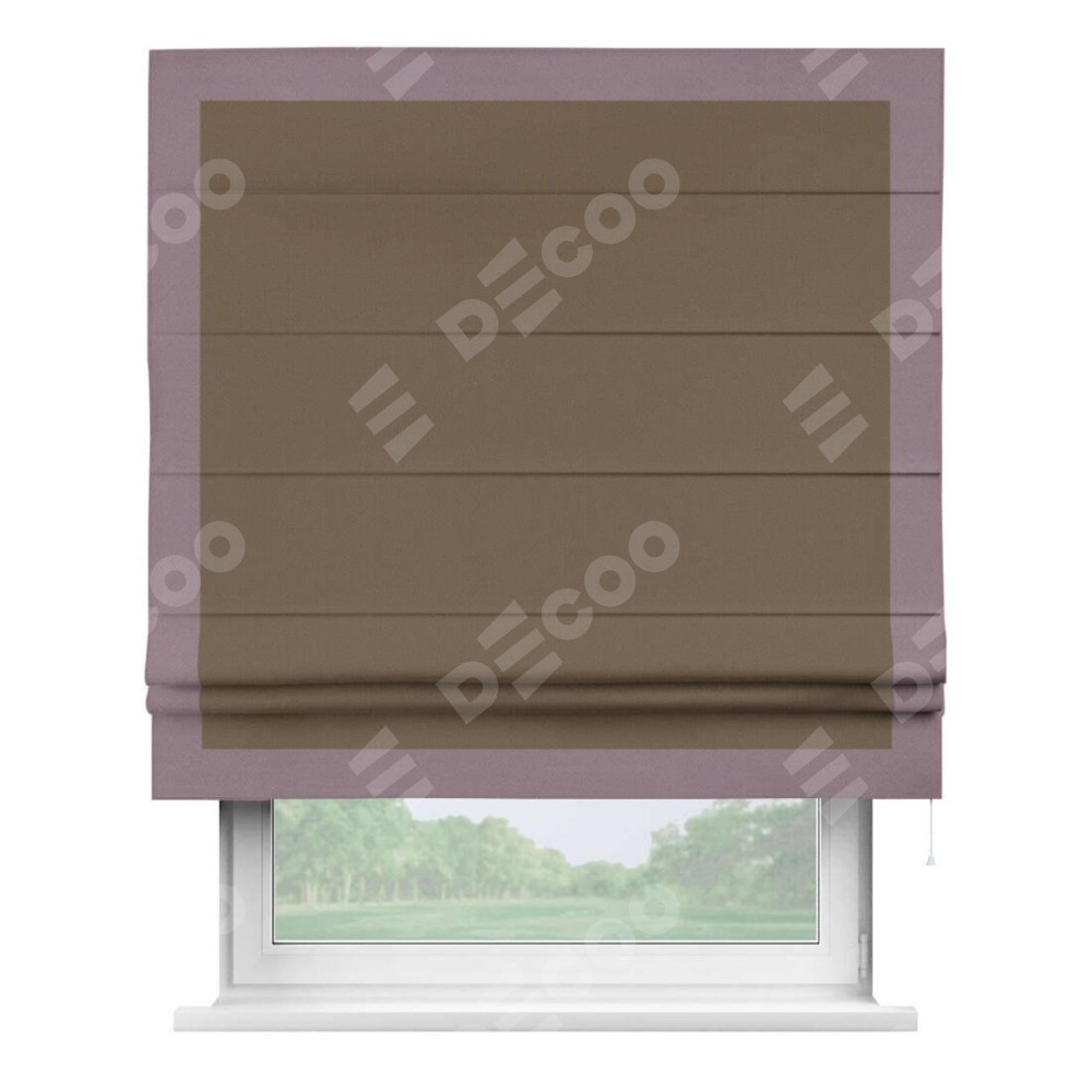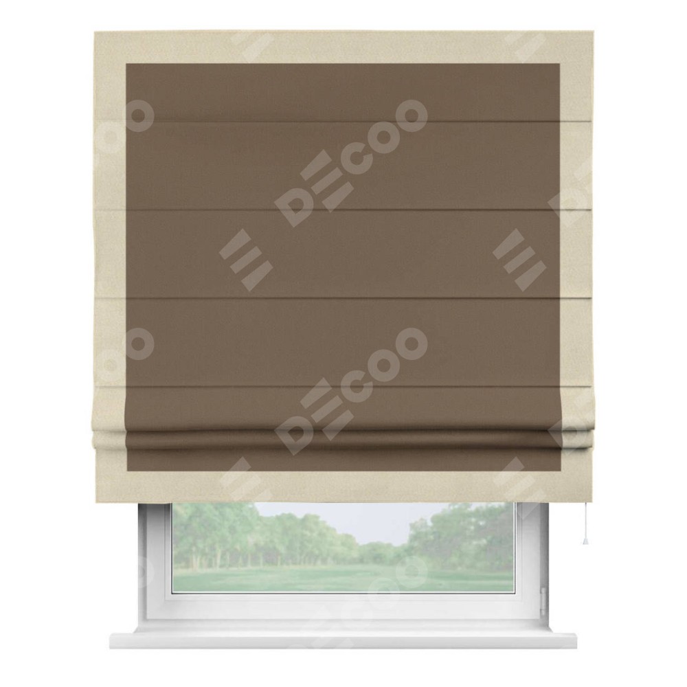 Римская штора «Кортин» для проема, блэкаут однотонный коричневый с кантом Чесс