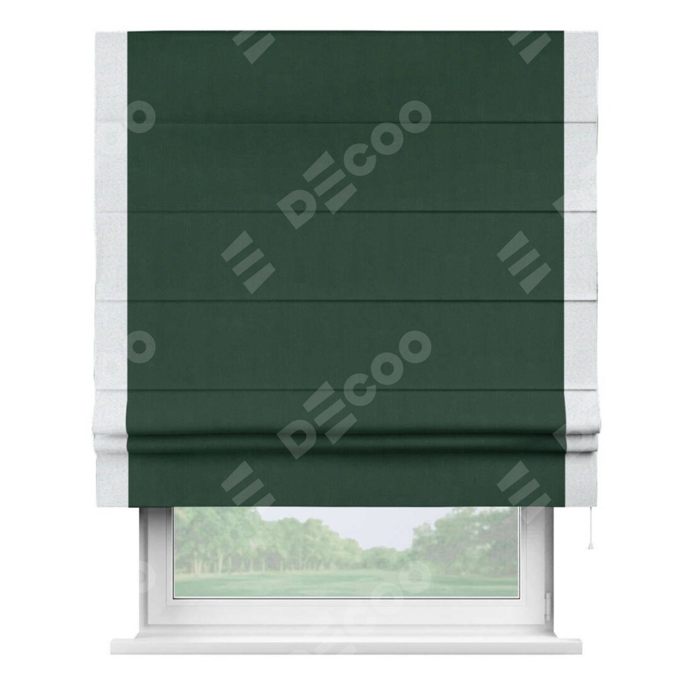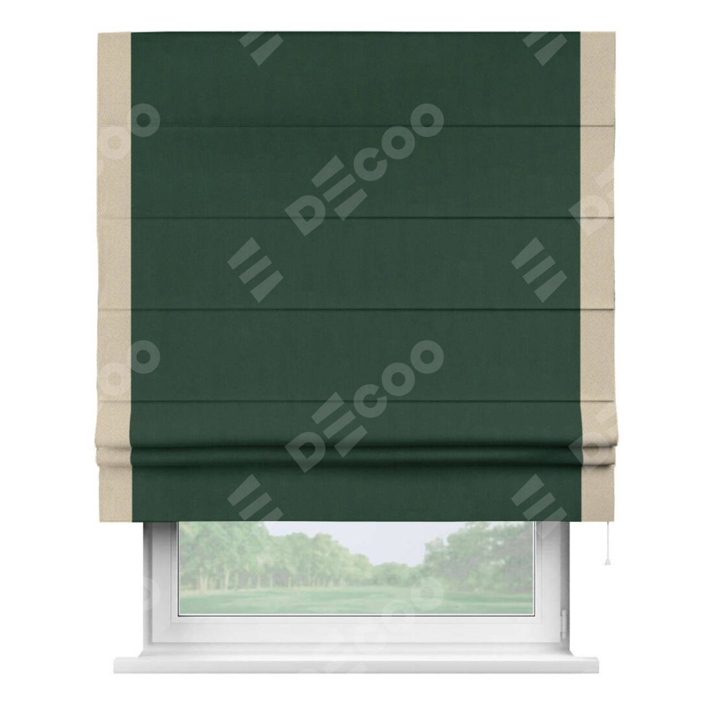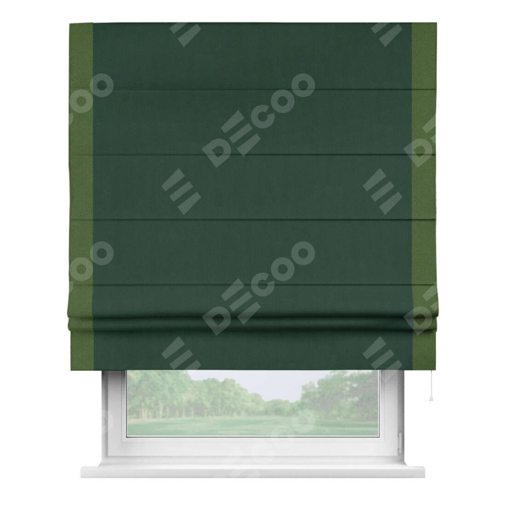Римская штора «Кортин» для проема, блэкаут однотонный зелёный с кантом Стрим Дуо