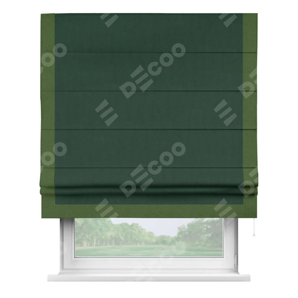 Римская штора «Кортин» для проема, блэкаут однотонный зелёный с кантом Виктория