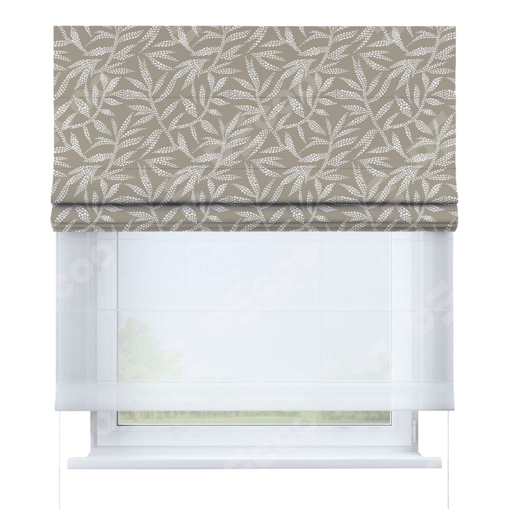 Двойная римская штора «День-ночь» от производителя Cortin предназначена для использования в проёмах. Эта штора уникальна тем, что состоит из двух полотен. На лицевой стороне находится блэкаут с нанесением сублимационной печати «Бежевая иллюзия», обеспечивающий эффективное затемнение. В комплект также входит вторая ткань — легкий белый тюль (артикул: V-01), который добавляет изящества и легкости оформлению окна. Кроме того, доступны и другие разновидности ткани тюль, выбор которых доступен по ссылке .