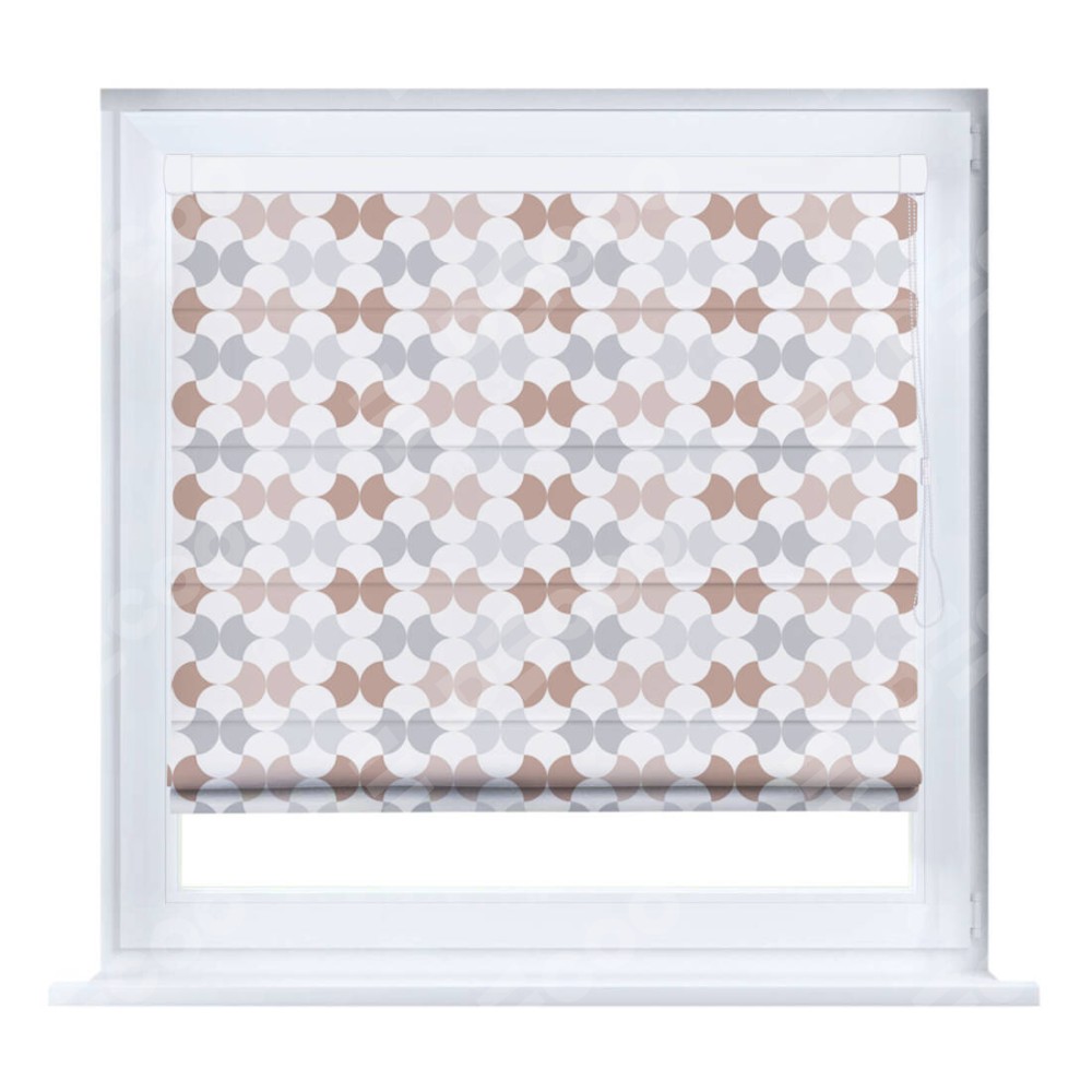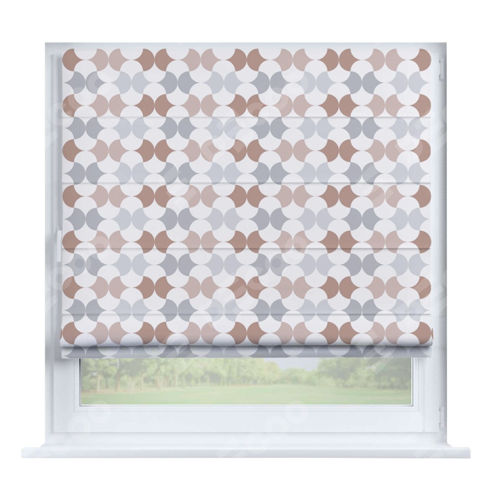 Римская штора производителя «Cortin», устанавливается на створку окна, пошита из ткани блэкаут с нанесением сублимационной печати «Модерн светлый». Штора шьётся по индивидуальным размерам, для данного типа римской шторы возможная ширина от 35 до 150 см., высота до 250 см.