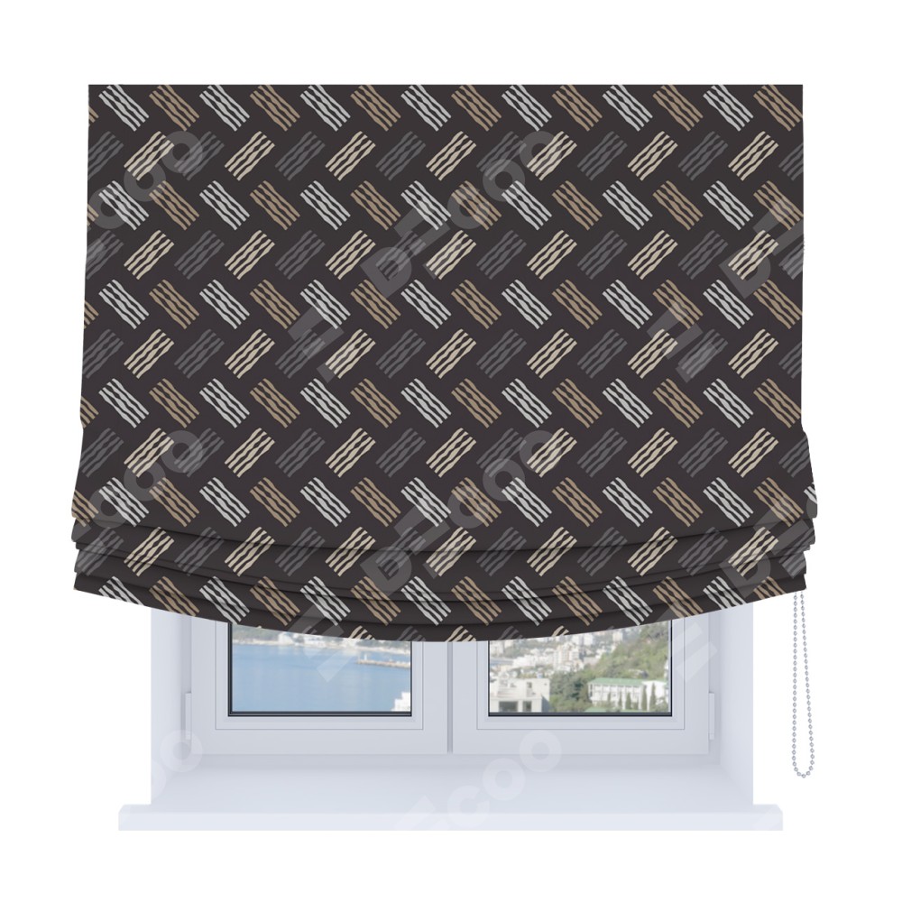 Римская штора Soft производителя «Cortin», используется для проёма, пошита из ткани блэкаут с нанесением сублимационной печати «Бохо штрихи». Имеет универсальный механизм и подходит для монтажа: на потолок, на стену и в нишу. В отличие от стандартных римских штор, римская штора Soft не имеет горизонтальных вставок и нижнего отвеса. Это позволяет ткани произвольно драпироваться в свободные мягкие складки.