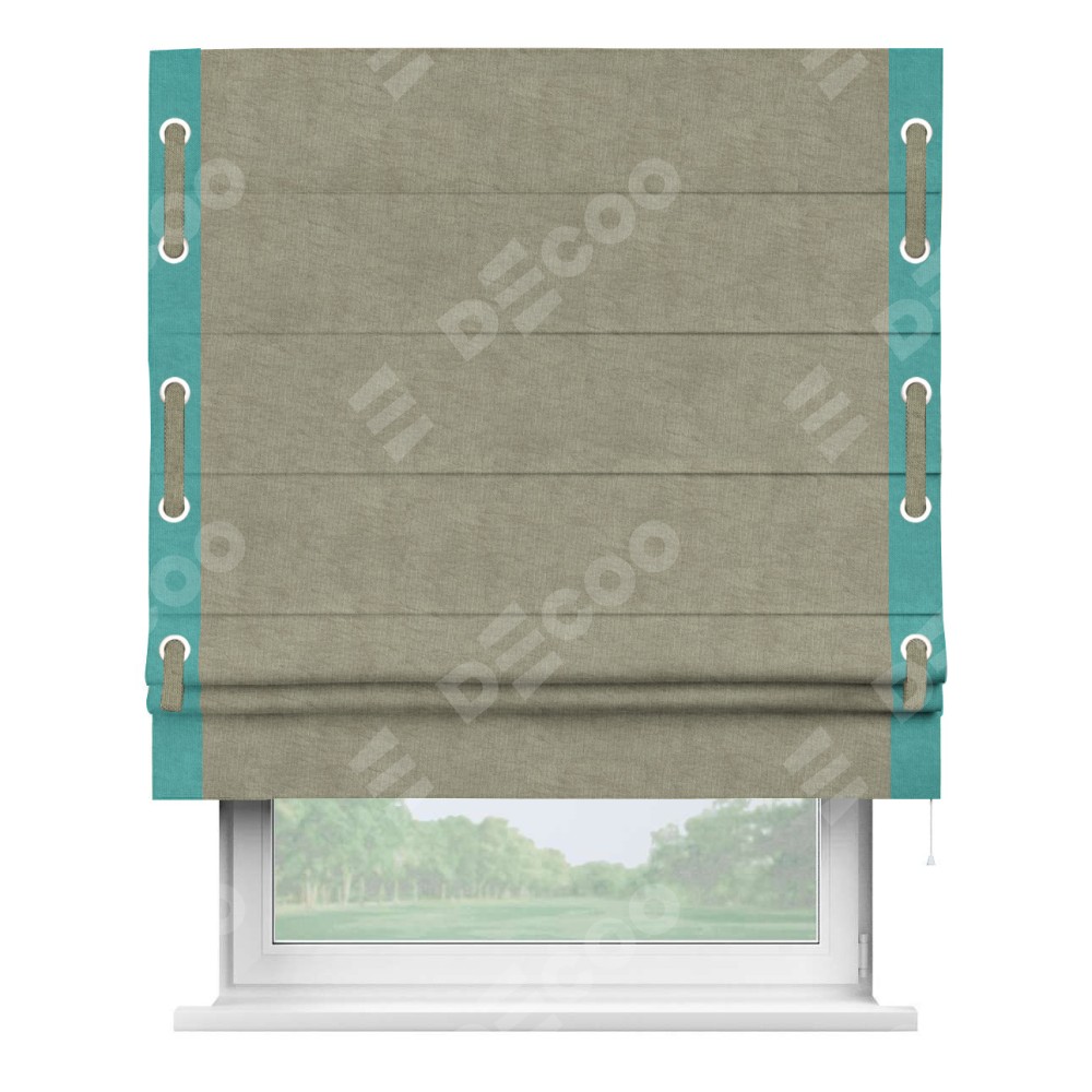 Римская штора «Кортин» для проема, канвас капучино, с кантом Стрим Дуо (люверсы с пояском)
