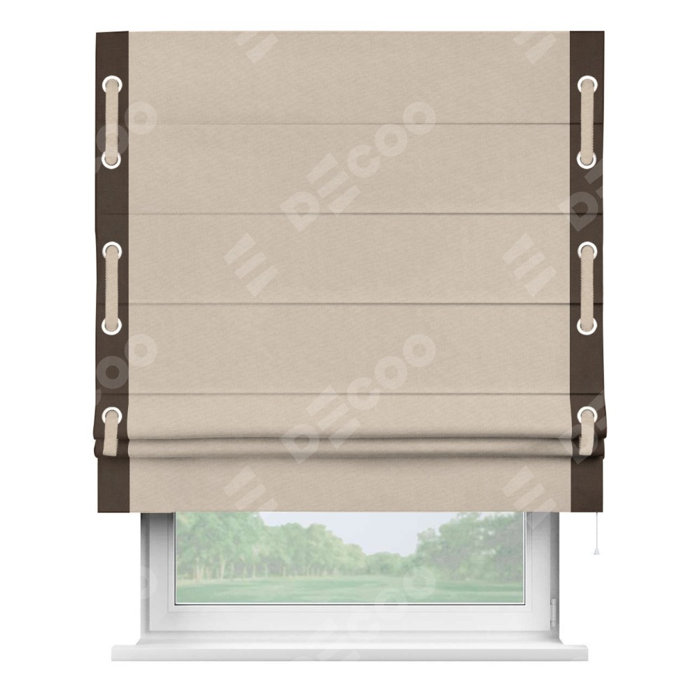 Римская штора «Кортин» для проема, канвас кофе с молоком, с кантом Стрим Дуо (люверсы с пояском)