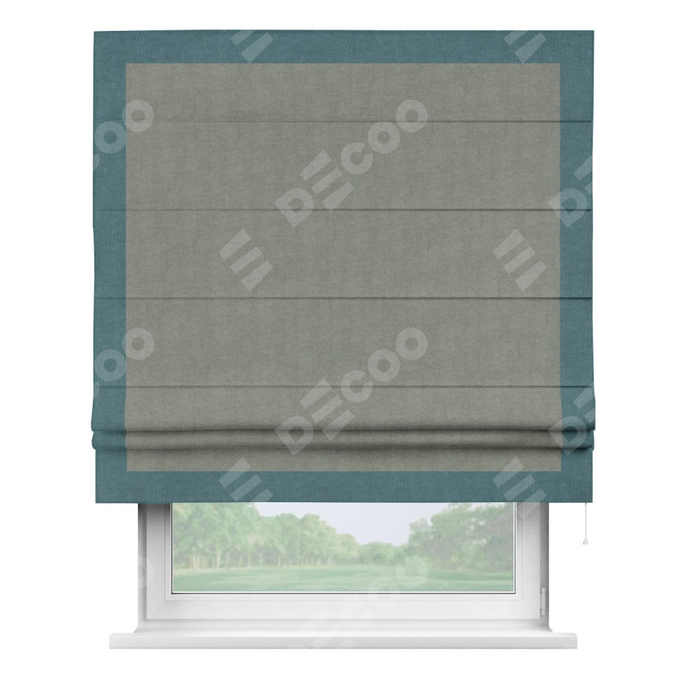 Римская штора «Кортин» для проема, канвас сизый, с кантом Чесс