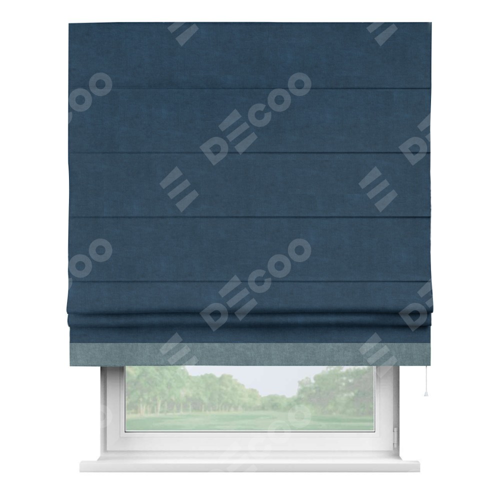 Римская штора «Кортин» для проема, канвас синий, с кантом Джестер