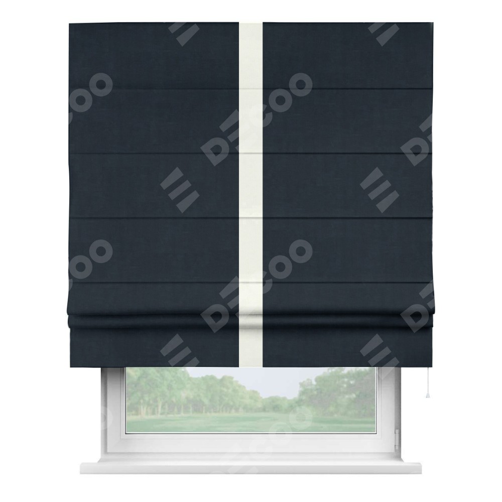 Римская штора «Кортин» для проема, канвас тёмно-синий, с кантом Хайвэй