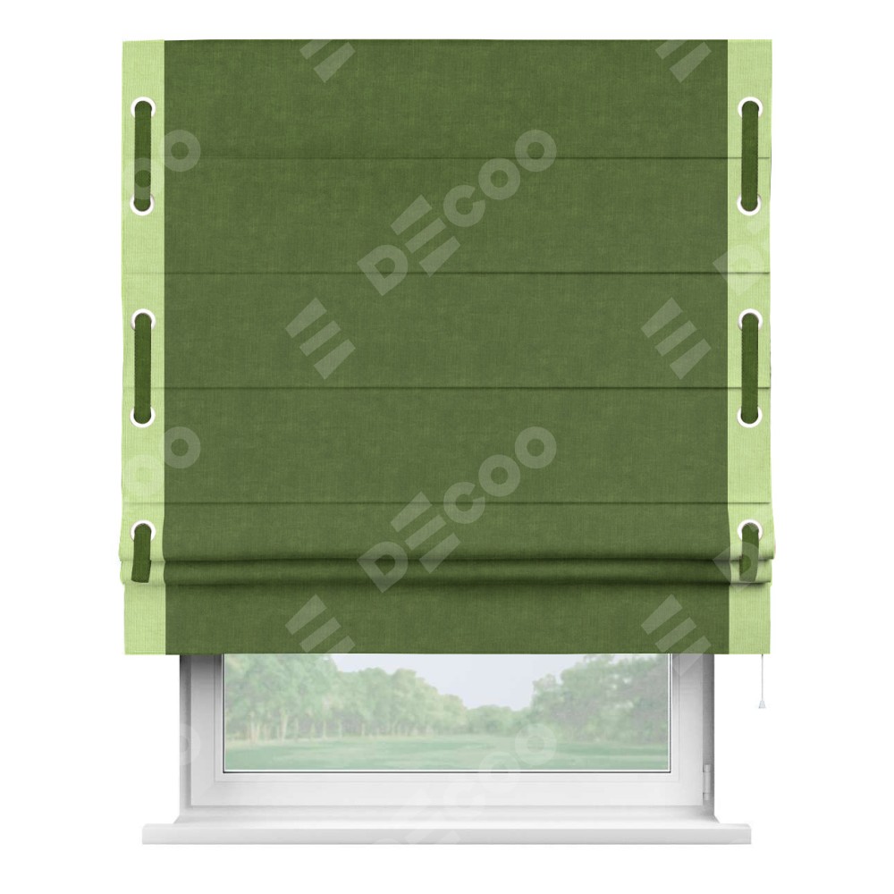 Римская штора «Кортин» для проема, канвас трава, с кантом Стрим Дуо (люверсы с пояском)