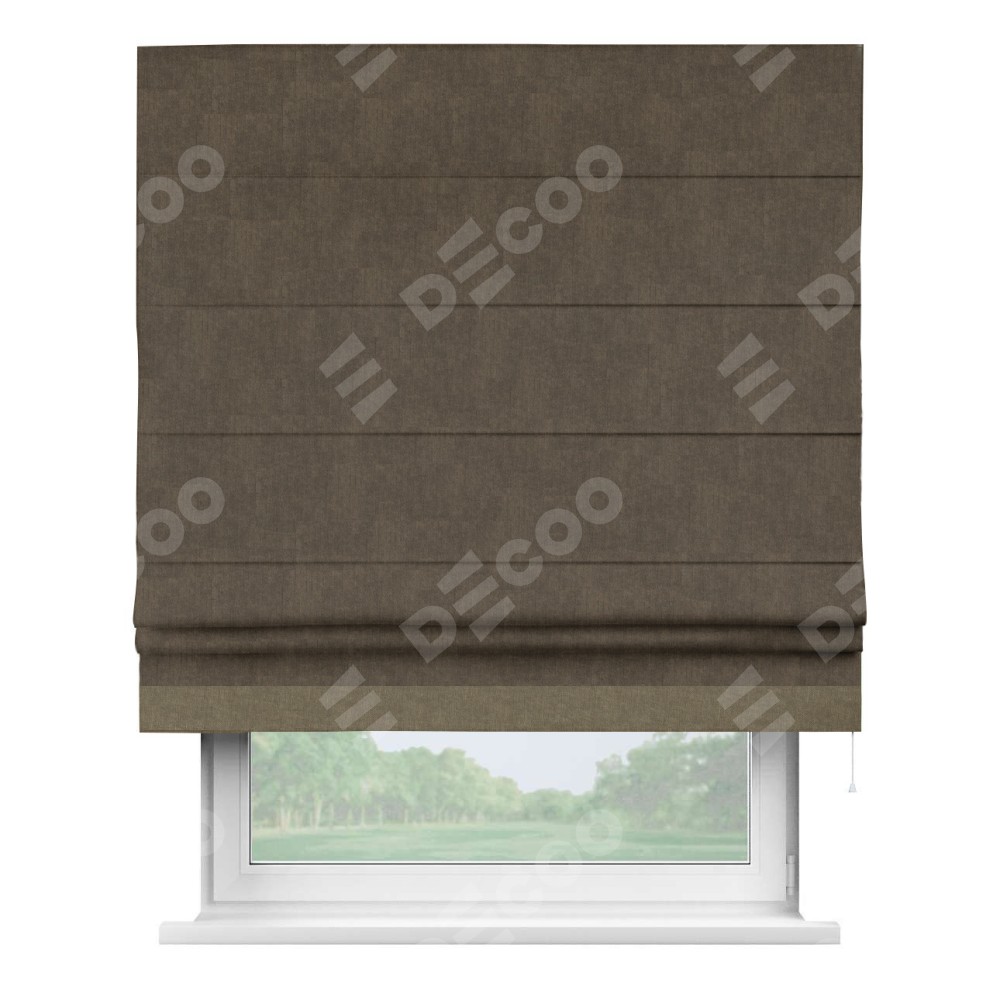 Римская штора «Кортин» для проема, канвас шоколадный, с кантом Джестер