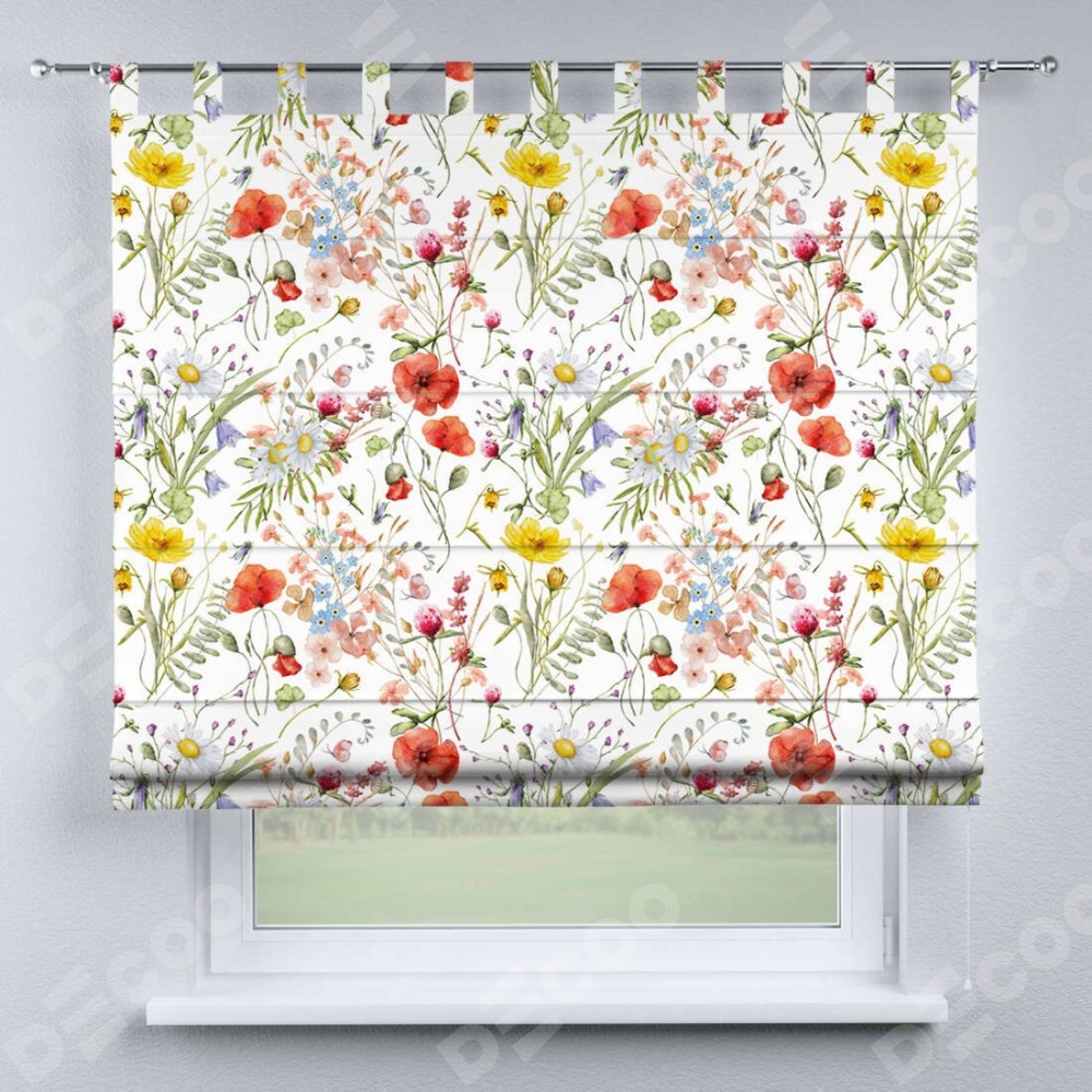Римская штора производителя «Cortin», используется для проёма, пошита из ткани блэкаут с нанесением сублимационной печати «Полевые маки». Данная модель пошита на петлях, комплектуется на выбор круглым карнизом и подходит для монтажа на стену. Римская штора на петлях имеет простую систему регулировки высоты, отличительным преимуществом данной модели является простой способ монтажа. Достаточно повесить ее на трубу и штора готова!