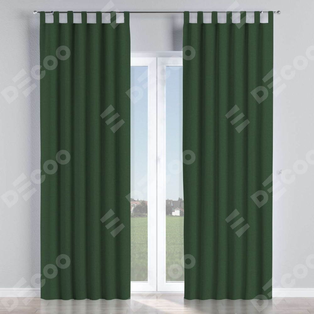 Комплект прямых штор, от производителя «Cortin», пошиты из ткани канвас глубокий зелёный, артикул ткани v-588. Данная модель пошита на петлях, комплектуется на выбор круглым карнизом и подходит для монтажа на стену или потолок. Прямые шторы на петлях шьются по стандарту с коэффициентом 1/2 (на 100 см. ширины проёма 200 см. ширины ткани), отличительным преимуществом данной модели является простой способ монтажа. Достаточно повесить ее на трубу и штора готова!