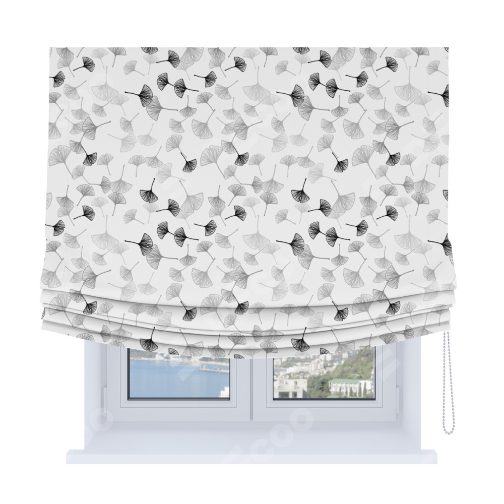 Римская штора Soft производителя «Cortin», используется для проёма, пошита из ткани блэкаут с нанесением сублимационной печати «Дымчатые листочки». Имеет универсальный механизм и подходит для монтажа: на потолок, на стену и в нишу. В отличие от стандартных римских штор, римская штора Soft не имеет горизонтальных вставок и нижнего отвеса. Это позволяет ткани произвольно драпироваться в свободные мягкие складки.