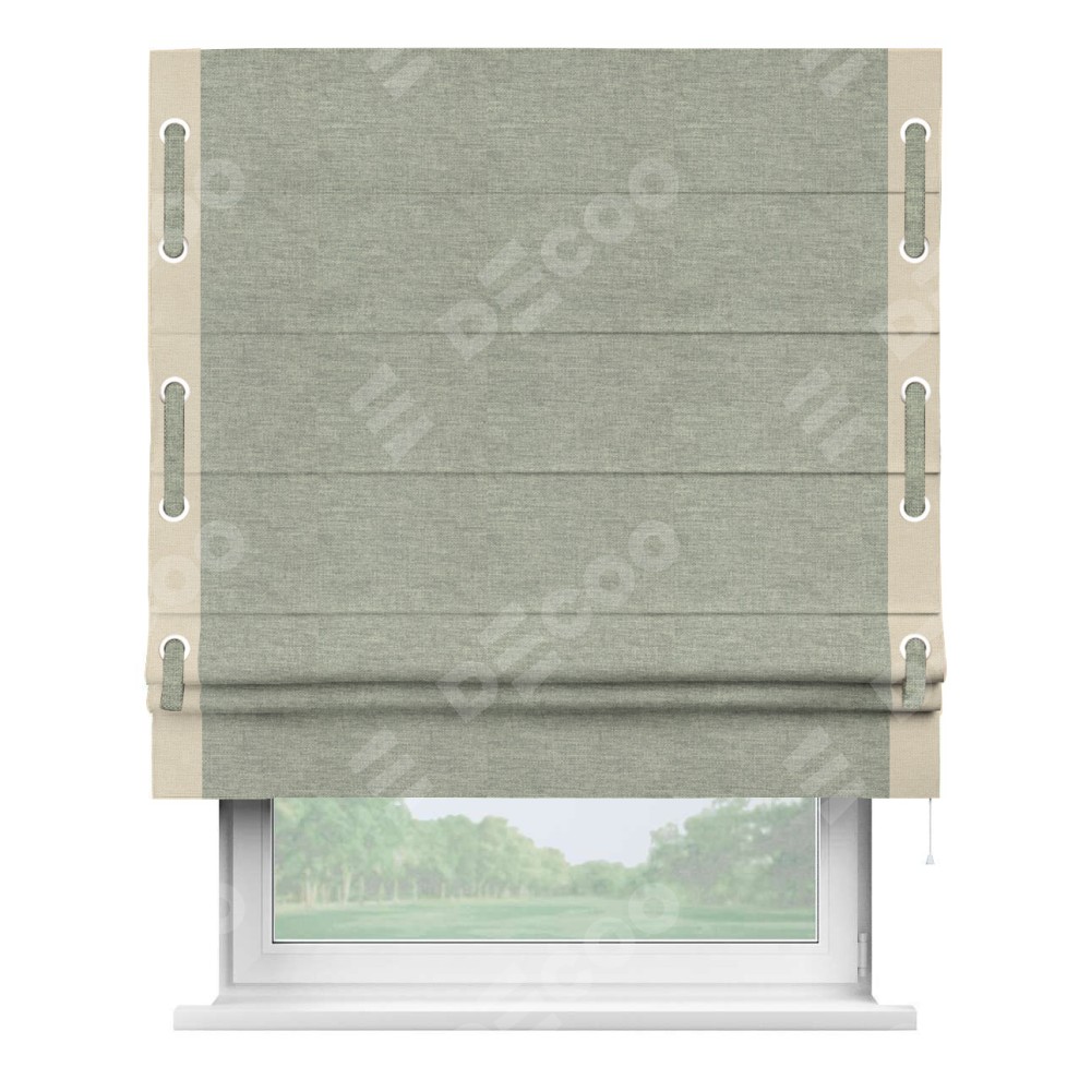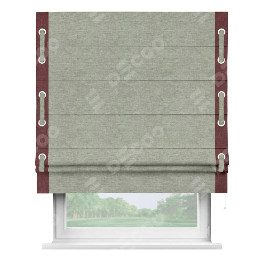 Римская штора «Кортин» с кантом Стрим Дуо (люверсы с пояском), для проема, ткань лён кашемир серый new