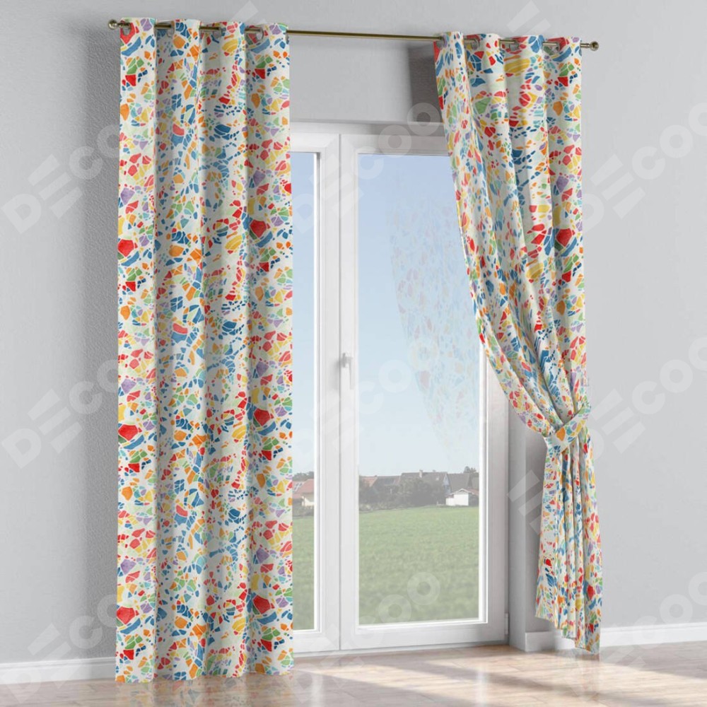 Комплект прямых штор, от производителя «Cortin», пошиты из ткани блэкаут с нанесением сублимационной печати «Калейдоскоп». Данная модель пошита на люверсах, комплектуется на выбор круглым карнизом и подходит для монтажа на стену или потолок. Прямые шторы на люверсах шьются по стандарту с коэффициентом 1/2 (на 100 см. ширины проёма 200 см. ширины ткани), отличительным преимуществом данной модели является простой способ монтажа. Достаточно повесить ее на трубу и штора готова!