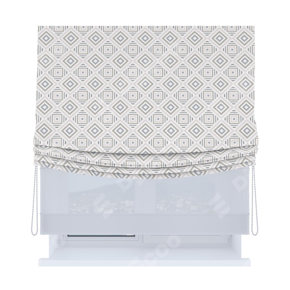 Римская штора день-ночь производителя «Cortin», используется для проёма, пошита из двух полотен, с лицевой блэкаут с нанесением сублимационной печати «Техно серый», вторая ткань тюль (по стандарту комплектуется тюль белого цвета артикул V-01). Имеет универсальный механизм и подходит для монтажа: на потолок, на стену и в нишу. Удобное управление каждой шторой отдельно.