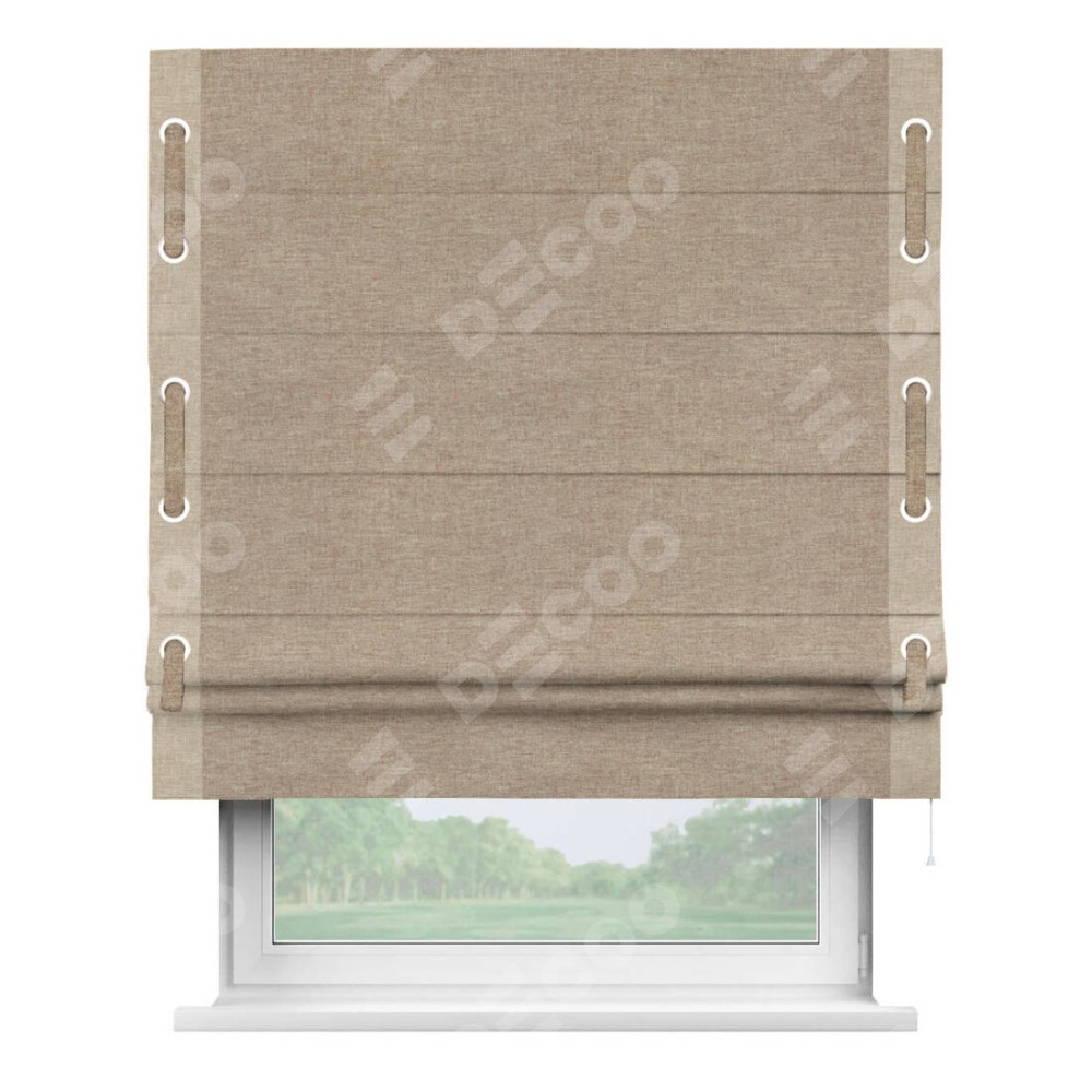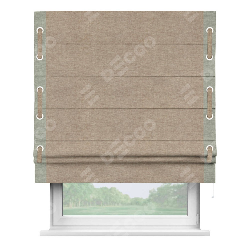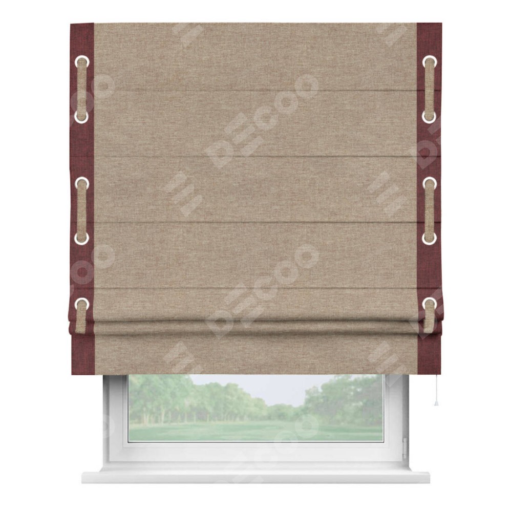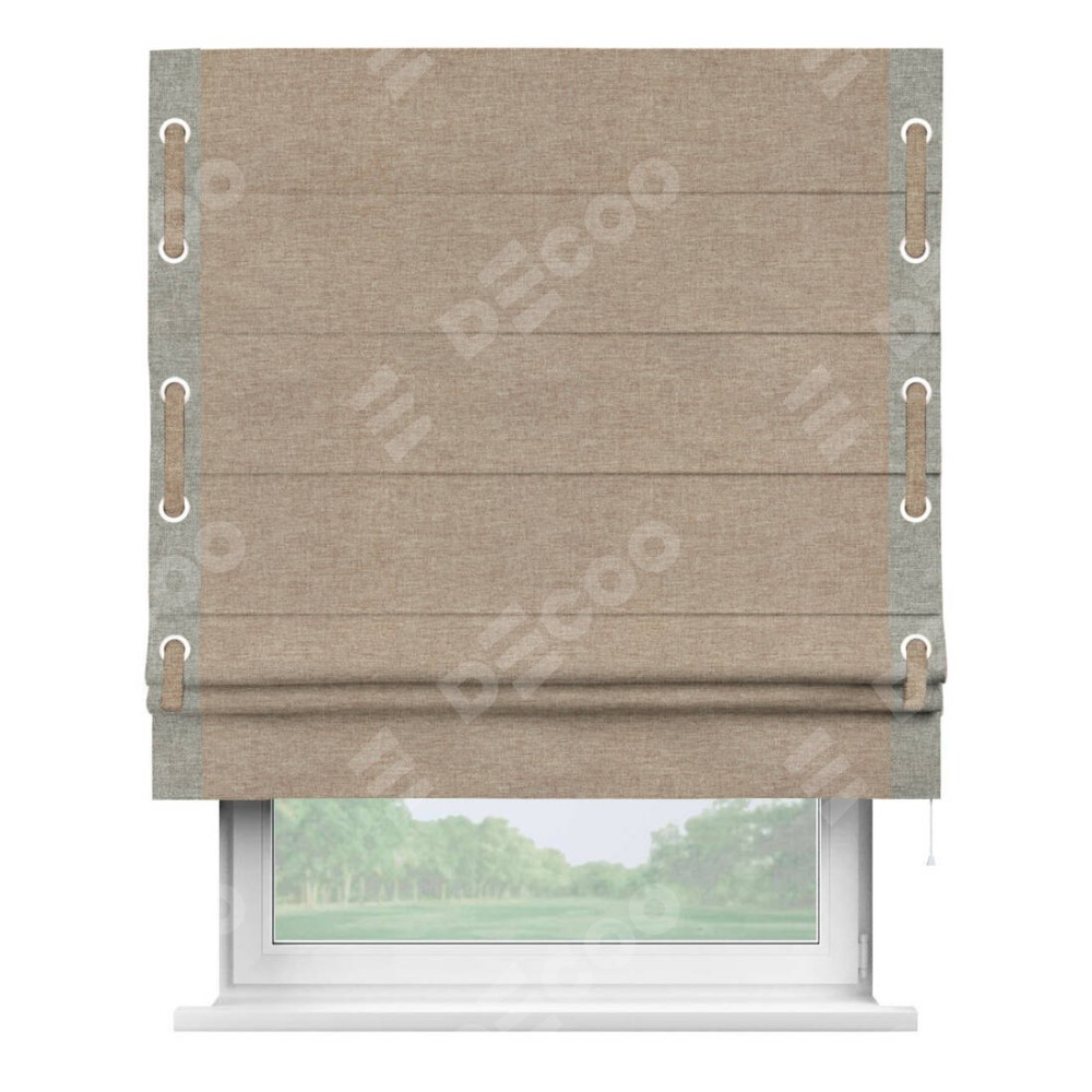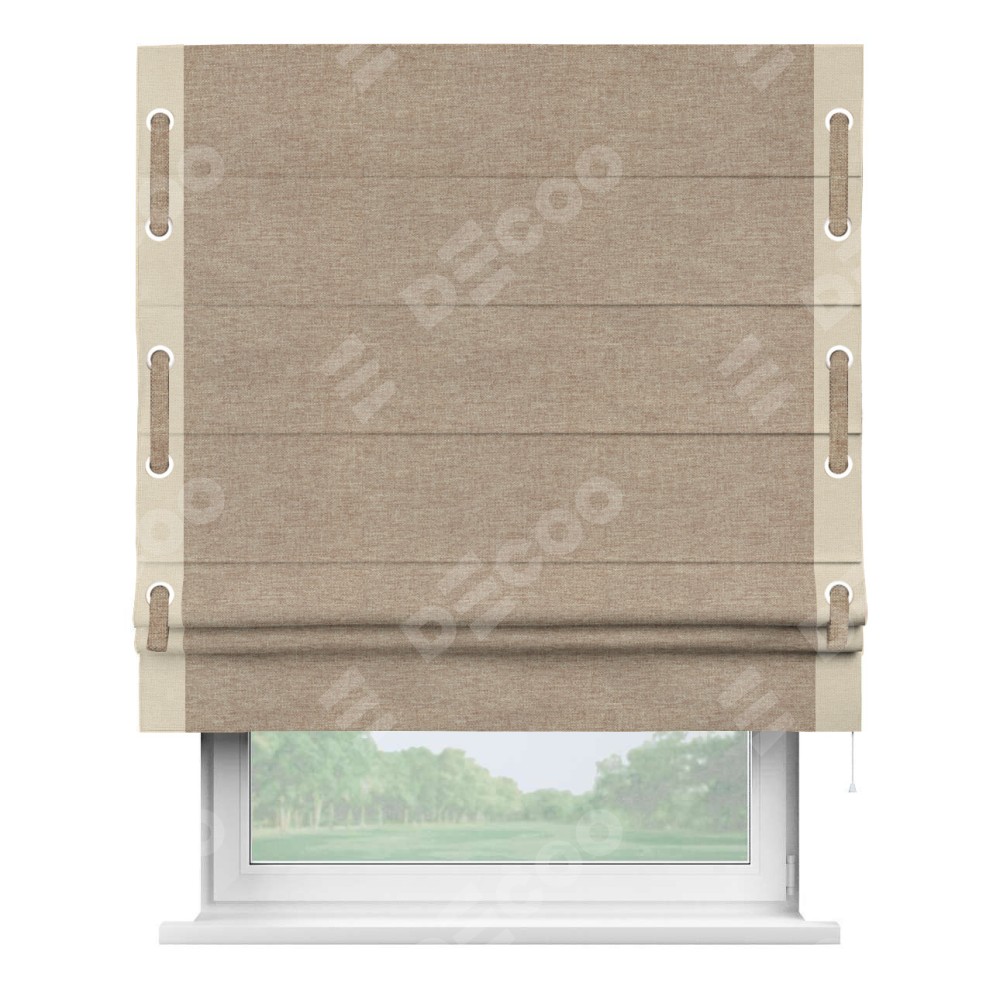 Римская штора «Кортин» с кантом Стрим Дуо (люверсы с пояском), для проема, ткань лён кашемир коричневый