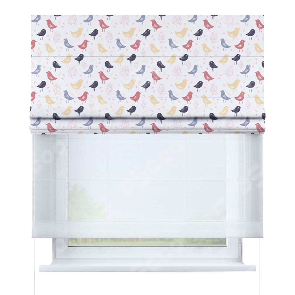 Римская штора «Кортин» день-ночь «Цветные птички»