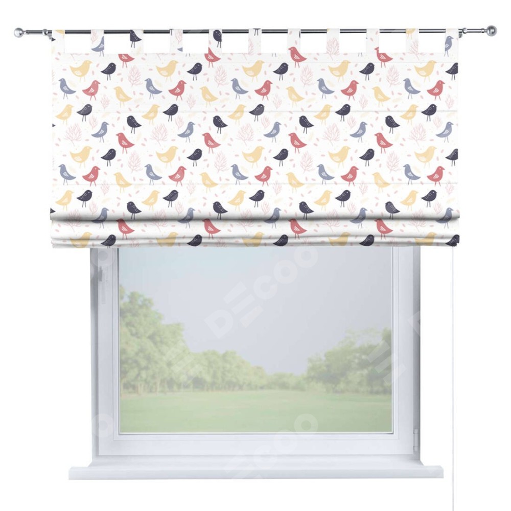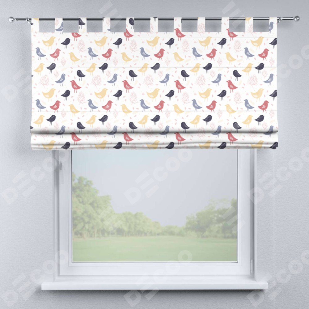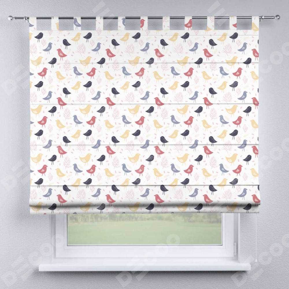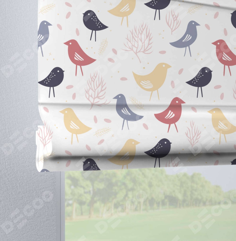 Римская штора на петлях «Цветные птички»