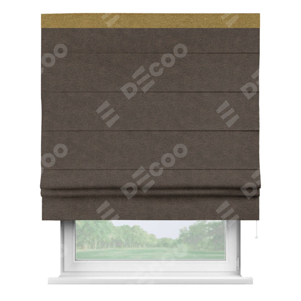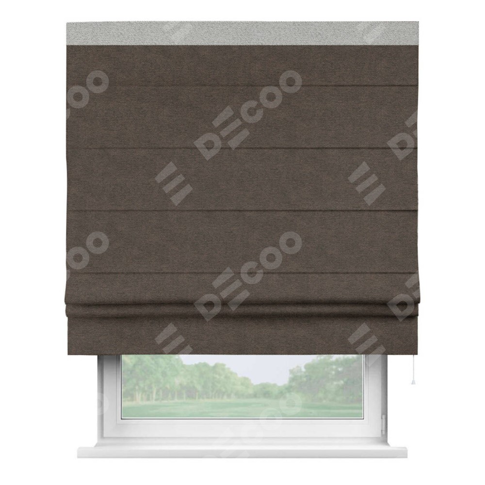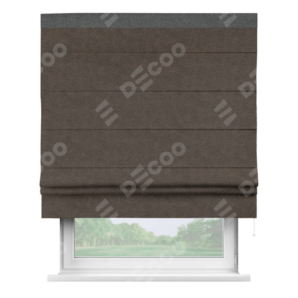 Римская штора «Кортин» для проема, твид блэкаут тёмно-коричневый, с кантом Кинг