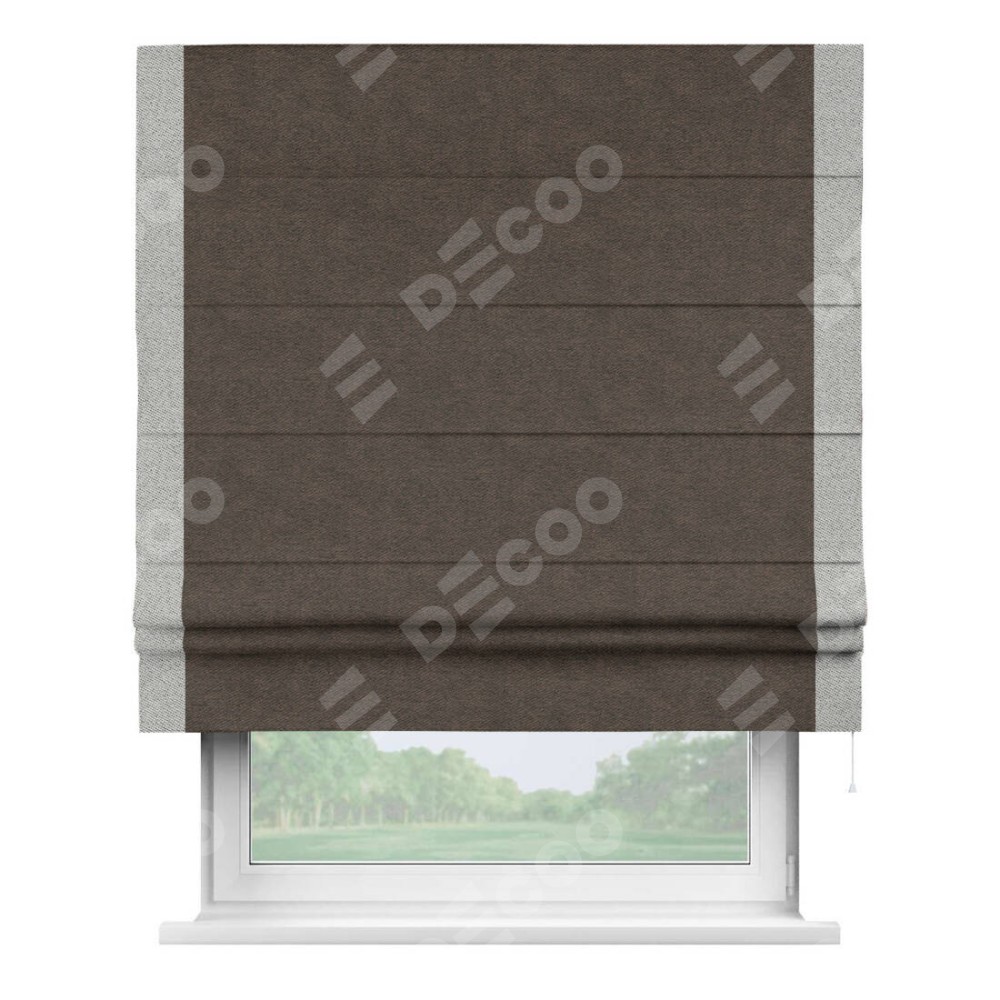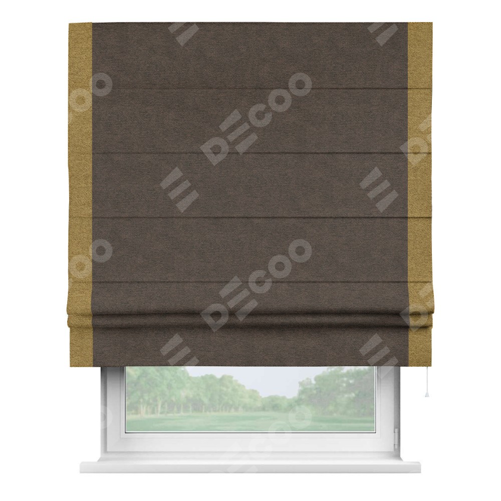 Римская штора «Кортин» для проема, твид блэкаут тёмно-коричневый, с кантом Стрим Дуо