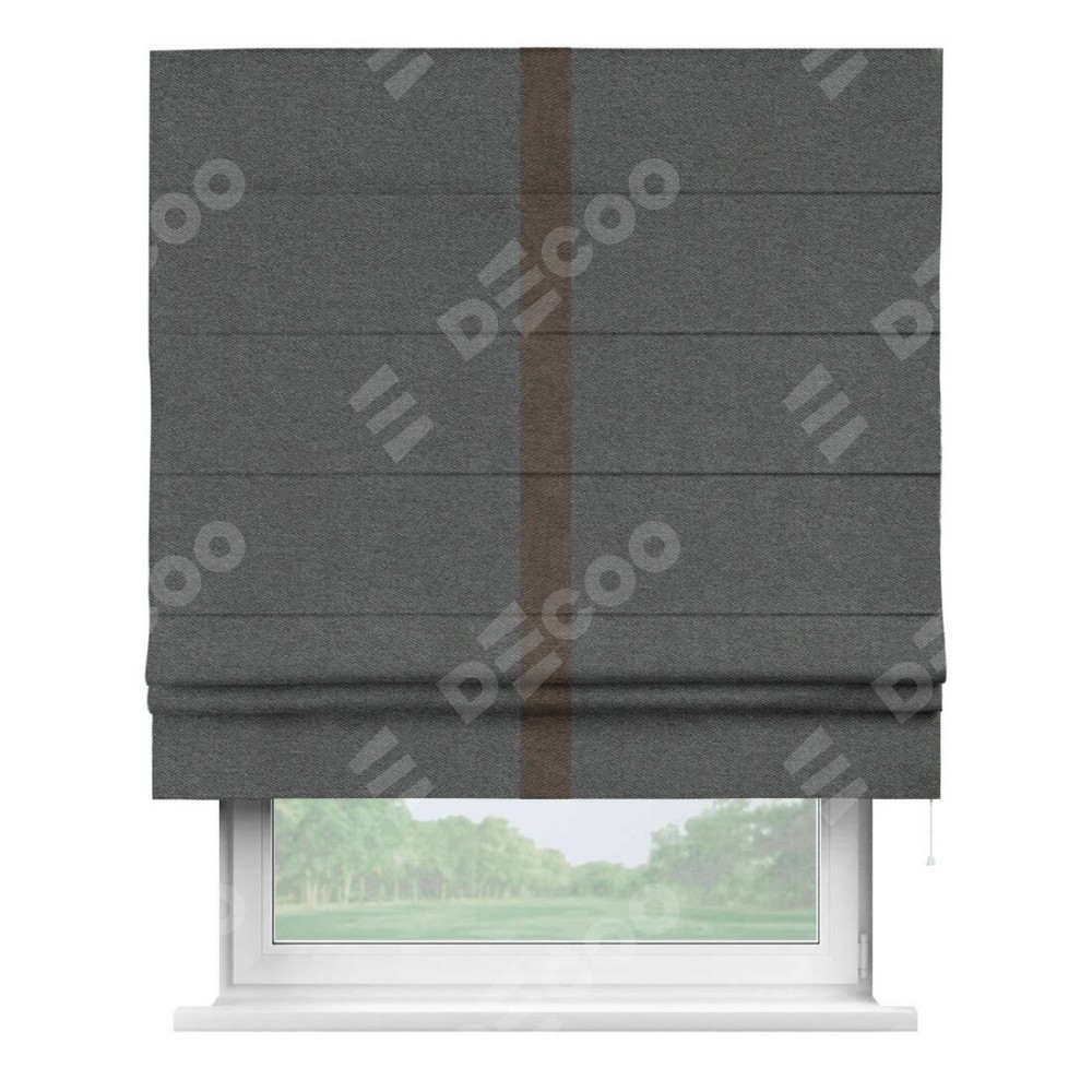 Римская штора «Кортин» для проема, твид блэкаут тёмно-серый, с кантом Хайвэй