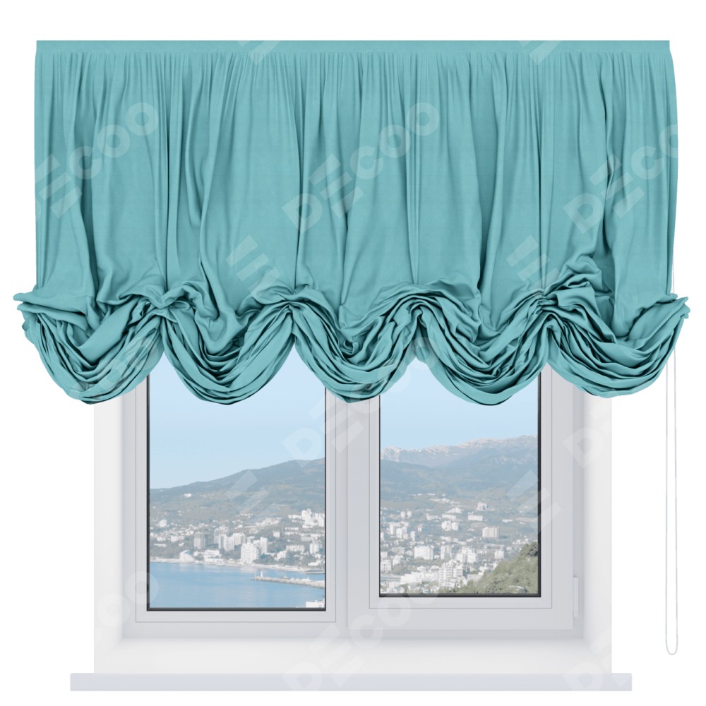 Австрийская штора производителя «Cortin», используется для проёма, пошита из ткани вельвет тиффани, артикул ткани 17765. Имеет универсальный механизм и подходит для монтажа: на потолок и на стену.