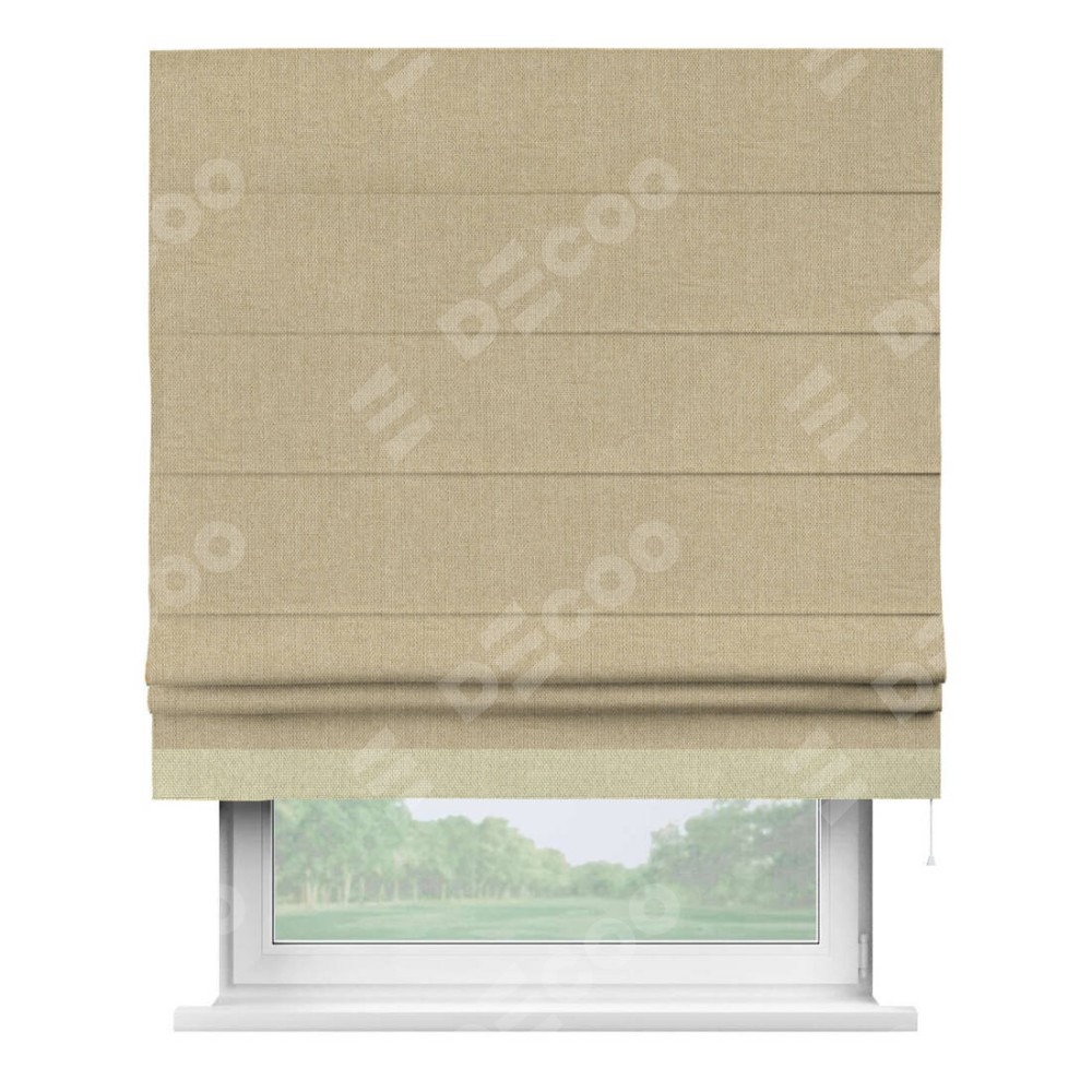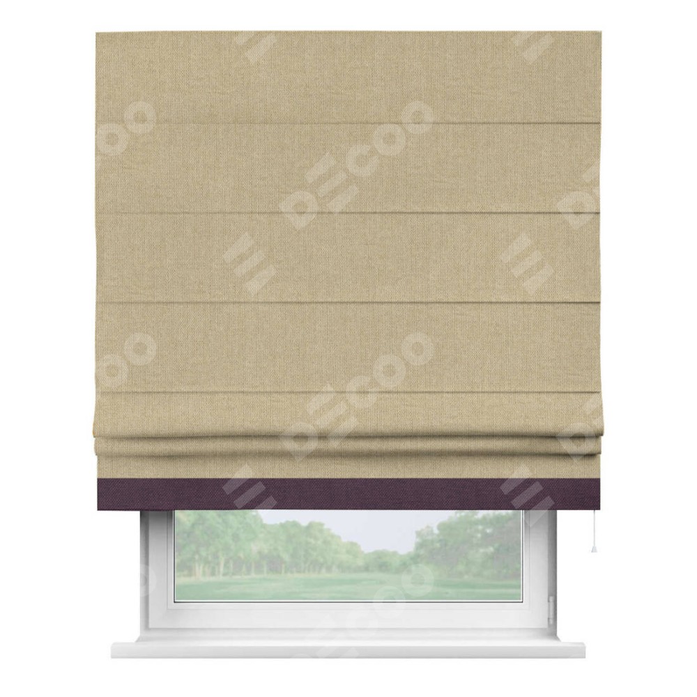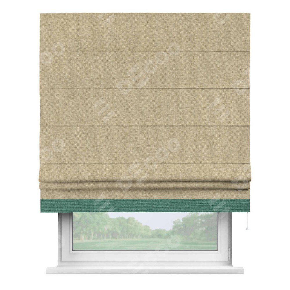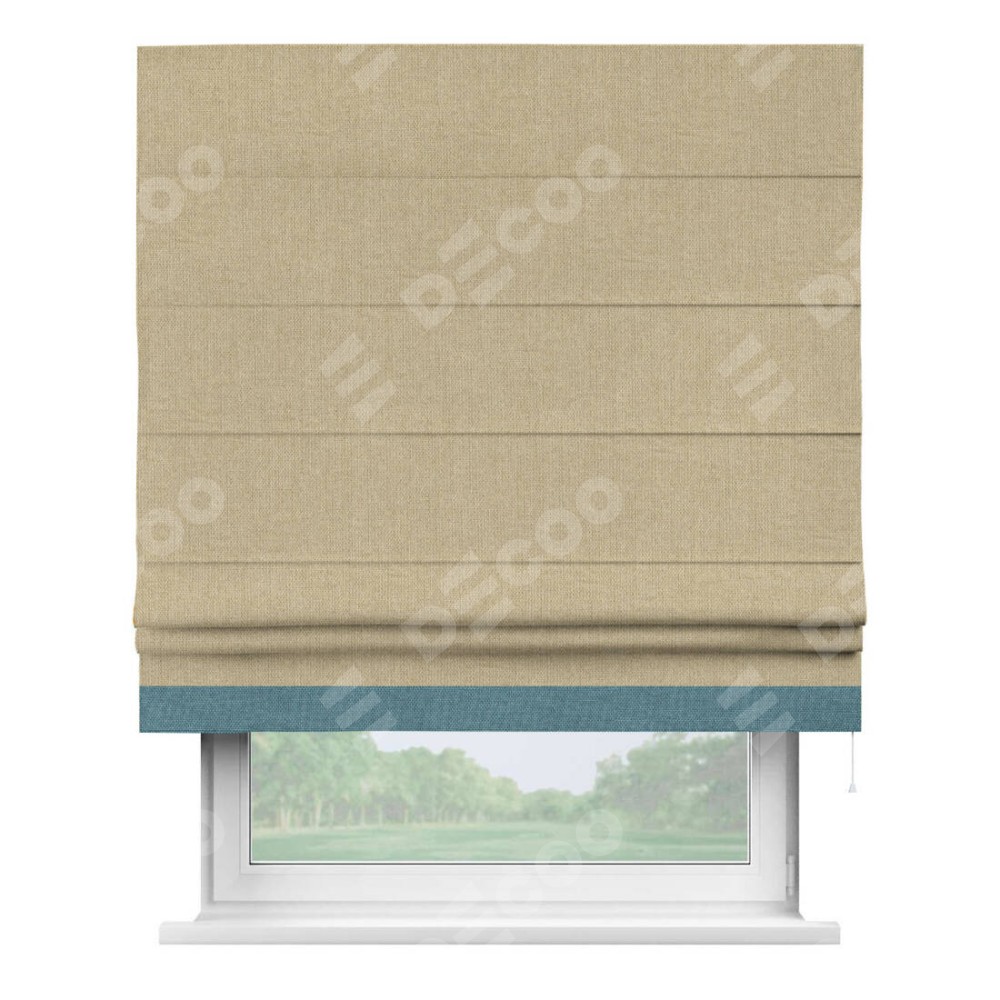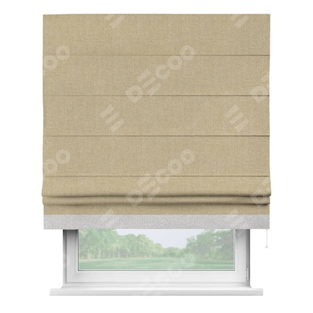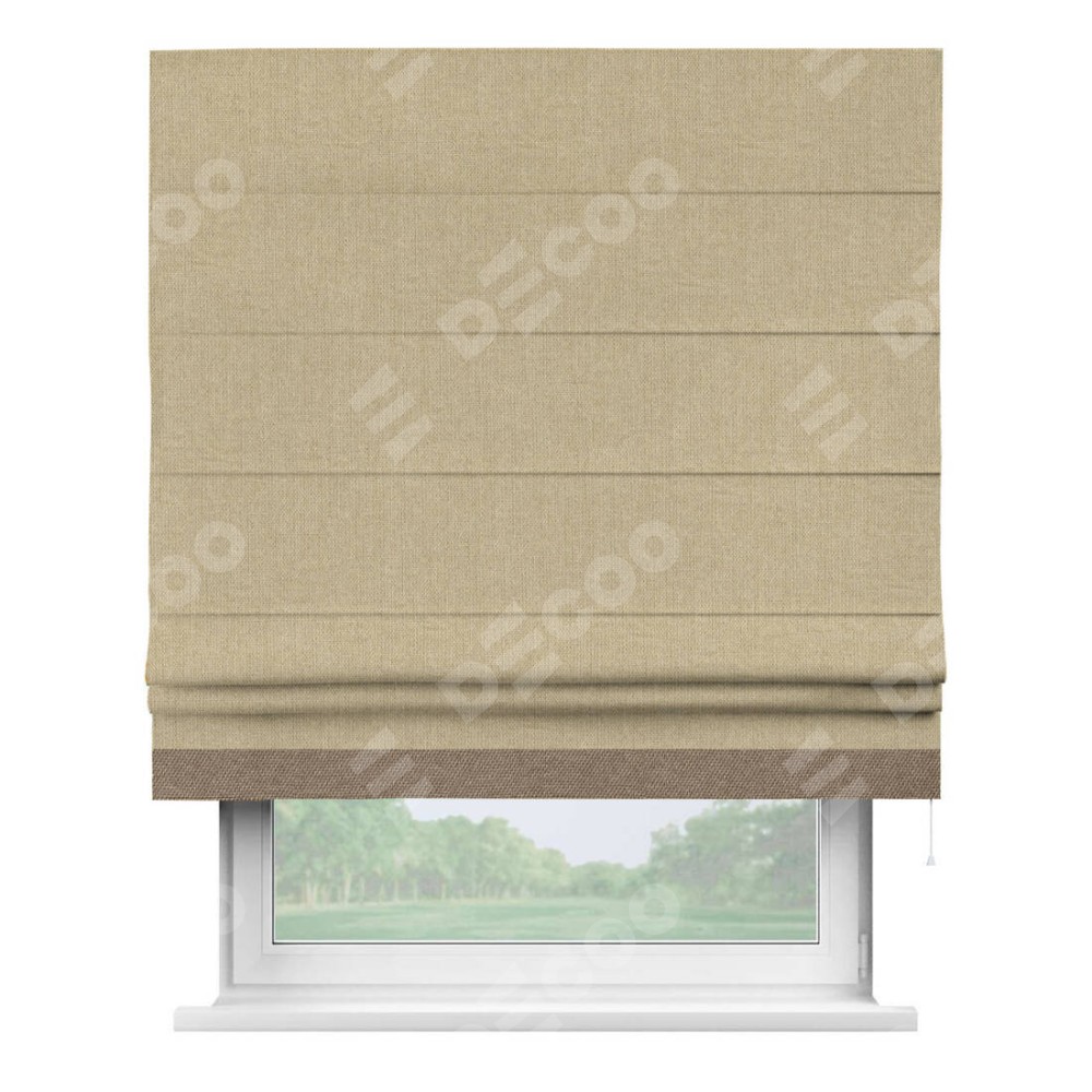 Римская штора «Кортин» для проема, лён димаут песочный с кантом Джестер