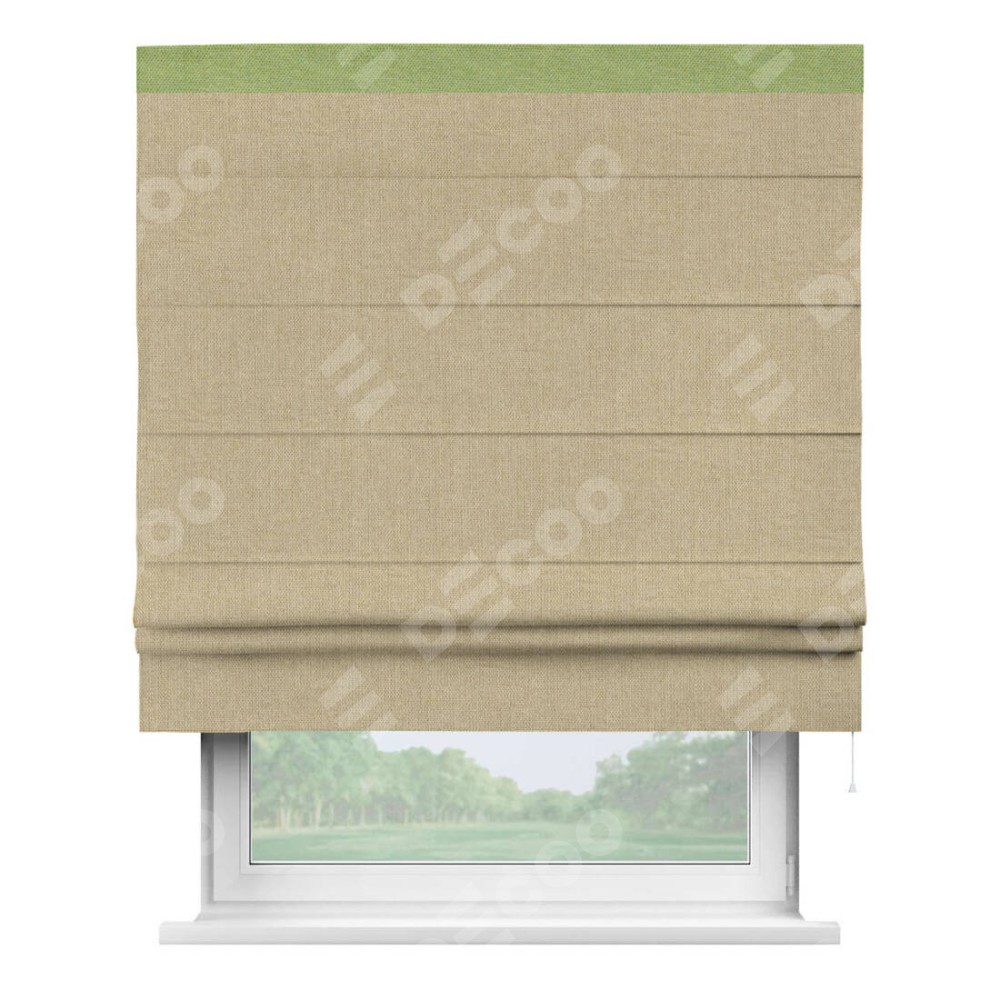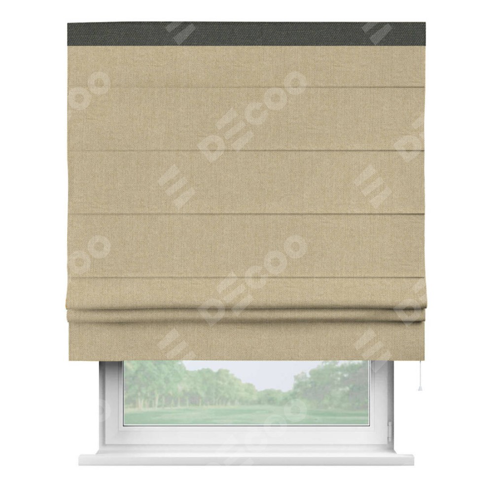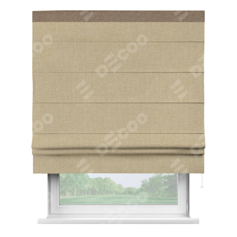 Римская штора «Кортин» для проема, лён димаут песочный с кантом Кинг