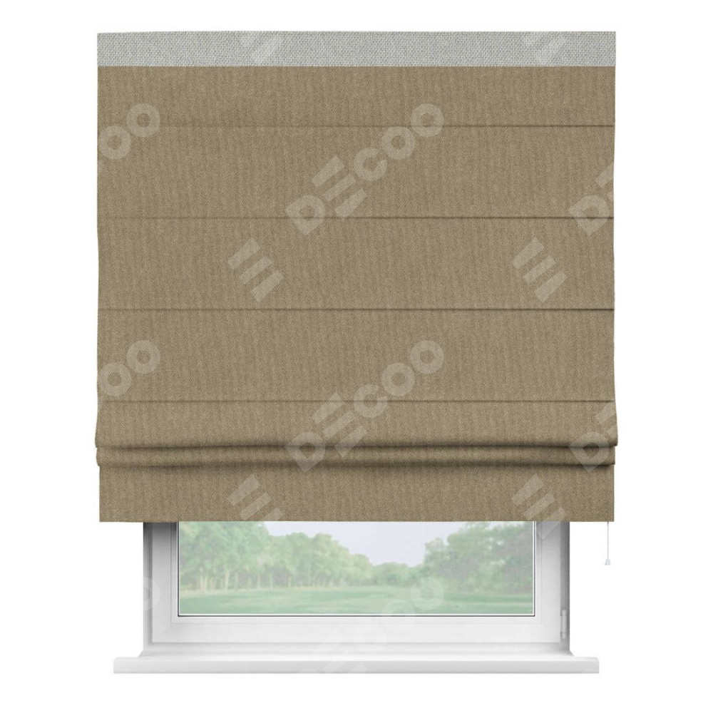 Римская штора «Кортин» для проема, лён димаут тёмно-бежевый с кантом Кинг