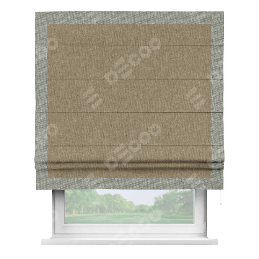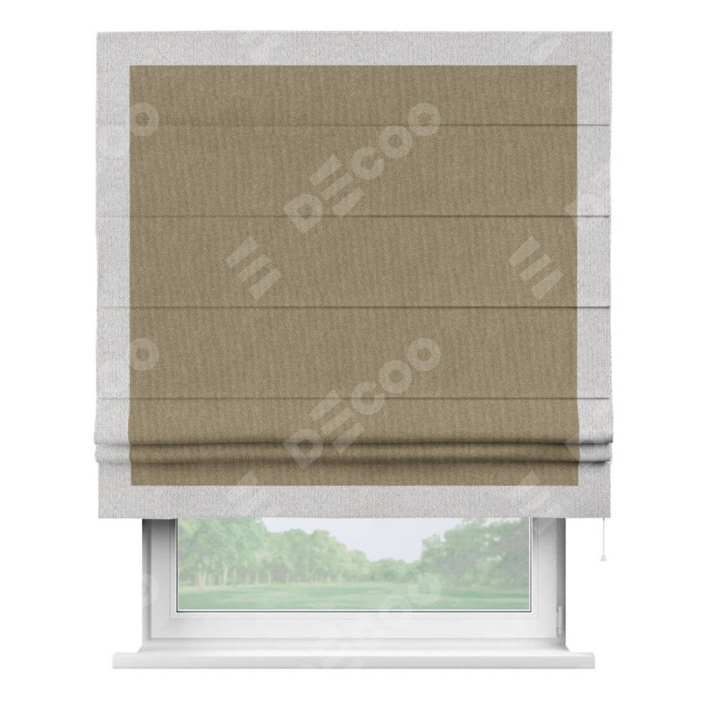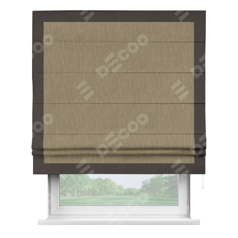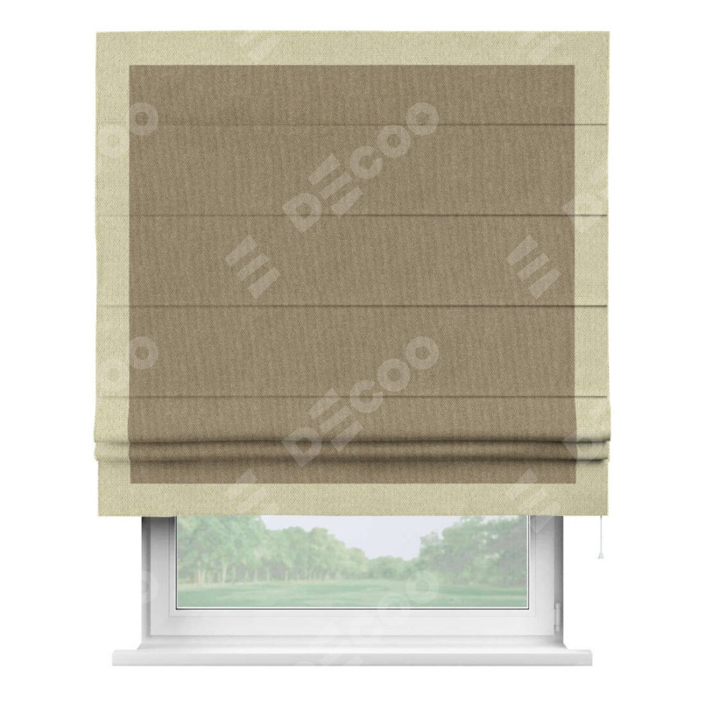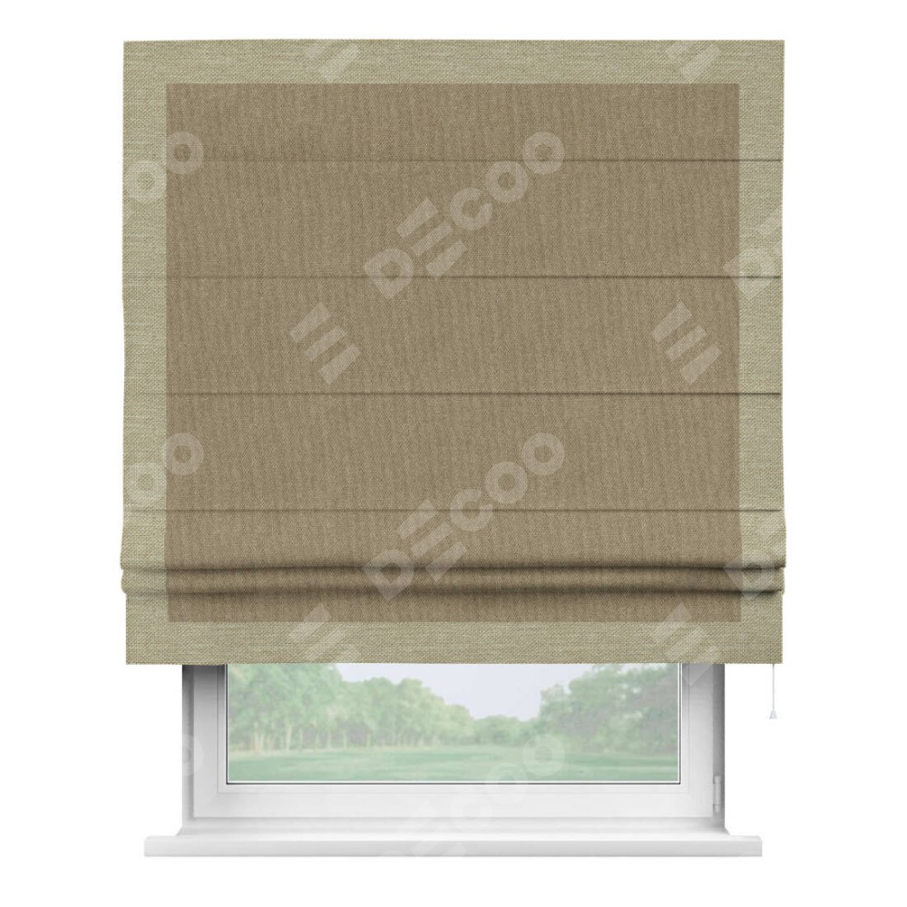 Римская штора «Кортин» для проема, лён димаут тёмно-бежевый с кантом Чесс